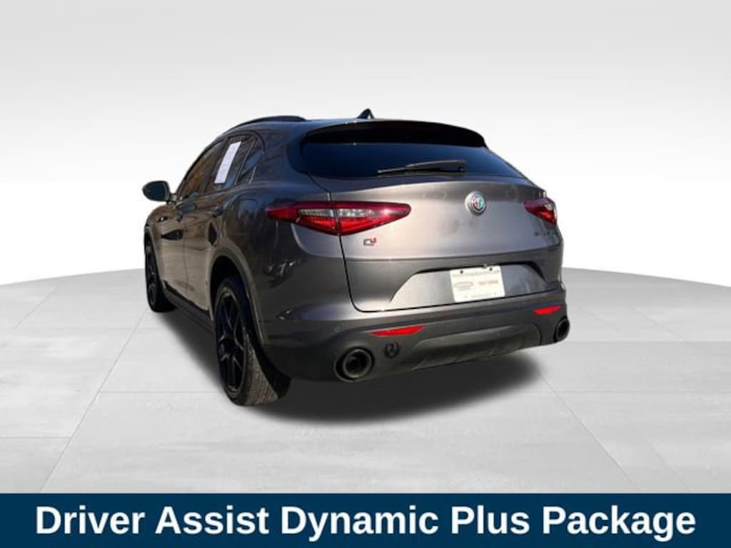 Vesuvio Gray Metallic 2019 Alfa Romeo Stelvio Ti Sport I4 8-Speed Automatic AWD 3.73 Axle Ratio, 4-Wheel Disc Brakes, 8 Speakers, 8.8 Widescreen Color Display, ABS brakes, Adaptive Cruise Control w/Stop, Aluminum Interior Trim, Aluminum Steering Column Mounted Paddle Shifters, AM/FM radio: SiriusXM, Apple CarPlay/Android Auto, Auto High Beam Headlamp Control, Automatic temperature control, Bright Aluminum Pedals, Colored Brake Calipers, Compass, Driver Assist Dynamic Plus Package, Driver door bin, Electronic Stability Control, Front Bucket Seats, Front Center Armrest, Front dual zone A/C, Full Speed Forward Collision Warning Plus, Garage door transmitter, Gloss Black Roof Rails, Gloss Black Window Surround Moldings, Illuminated entry, Infrared Windshield, Lane Departure Warning System, Leather Seats, Leather Shift Knob, Memory seat, Overhead airbag, ParkView Rear Back-Up Camera, Passenger door bin, Power Adjustable Bolster, Power driver seat, Power Liftgate, Power windows, Quick Order Package 22S Sport, Radio data system, Rear fog lights, Remote keyless entry, Roof rack: rails only, Security system, Speed control, Spoiler, Sport Leather Seats, Sport Leather-Wrapped Steering Wheel, Sport Tuned Front Dampers, Tachometer, Telescoping steering wheel, Ti Performance Package, Turn signal indicator mirrors, Wheels: 20 x 8.5 Sport Aluminum.