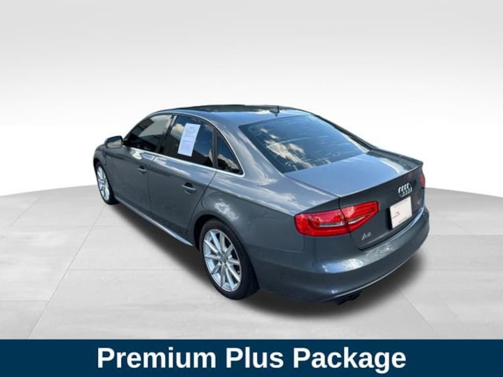 Monsoon Gray Metallic 2016 Audi A4 2.0T Premium Plus quattro 2.0L 4-Cylinder TFSI DOHC 8-Speed Automatic with Tiptronic quattro 8-Speed Automatic with Tiptronic, quattro, Black w/Leather Seating Surfaces, 10 Speakers, 3-Step Heated Front Seats, AM/FM radio: SiriusXM, Anti-whiplash front head restraints, Audi Advanced Key, Audi Connect w/Online Services, Audi First Aid Kit, Audi Guard All-Weather Floor Mats, Audi Side Assist, Auto-Dimming Interior Mirror w/Digital Compass, Automatic temperature control, Brake assist, Color Driver Information System w/Trip Computer, Convenience Plus Package, Electronic Stability Control, Four wheel independent suspension, Front Bucket Seats, Front Center Armrest, Front dual zone A/C, Front fog lights, Front reading lights, HDD Navi w/Voice Control, Heated Auto-Dimming Exterior Mirrors, Illuminated entry, Leather Seating Surfaces, Leather Shift Knob, Leather steering wheel, Memory Function for Driver, Outside temperature display, Panic alarm, Parking System w/Rearview Camera, Power driver seat, Power Front Seats, Power passenger seat, Power Sunroof, Power windows, Premium Plus Package, Radio: 1 CD/DVD-Player & HD, Rain sensing wipers, Rear air conditioning, Rear seat center armrest, Remote keyless entry, Security system, Speed control, Split folding rear seat, Technology Package, Traction control, Trip computer, Turn signal indicator mirrors, Wheels: 8.0 x 18 10-Spoke High Gloss Design.