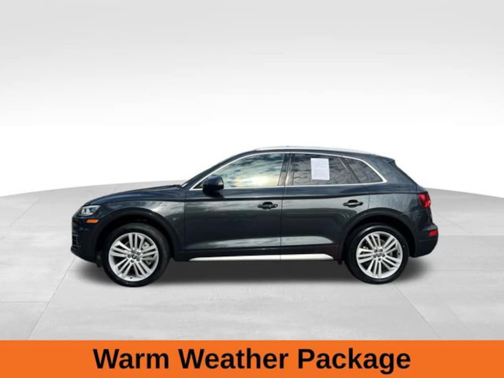 Monsoon Gray Metallic 2018 Audi Q5 2.0T quattro 2.0L TFSI 7-Speed Automatic S tronic quattro Black w/Leather Seating Surfaces, 10 Speakers, 12-Way Power Front Sport Seats, 3-Step Front Seat Ventilation, 3-Step Heated Front Seats, 5.302 Axle Ratio, All Weather Floor Mats, AM/FM radio: SiriusXM, Audi Beam-Rings, Audi Guard Protection Kit, Audi Side Assist w/Pre Sense Rear, Automatic temperature control, Cargo Mat, Compass, Driver door bin, DVD-Audio, Electronic Stability Control, Exterior Parking Camera Rear, Fine Grain Ash Natural Gray Brown Wood Inlays, Front dual zone A/C, Front reading lights, Full LED Headlights, Garage door transmitter: HomeLink, High Gloss Window Surrounds, Illuminated entry, Manual Rear Side Window Sunshades, Memory seat, Panoramic Sunroof w/Tilt/Slide & Power Sunshade, Parking System Plus (Front/Rear Acoustic Sensors), Passenger door bin, Power Liftgate, Premium Plus Package, Radio data system, Rear air conditioning, Rear Cross Traffic Assist, Rear fog lights, Remote keyless entry, Roof rack, Security system, Speed control, Spoiler, Stainless Steel Door Sills, Traction control, Trailer Hitch, Turn signal indicator mirrors, Vehicle Exit Assist, Warm Weather Package, Wheels: 8 x 20 5-Spoke Segment Design.