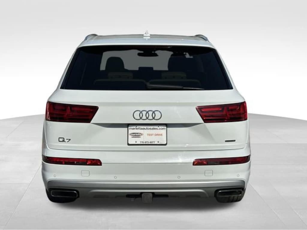 Carrara White 2018 Audi Q7 2.0T Premium Plus quattro 2.0L I4 TFSI DOHC 8-Speed Automatic with Tiptronic quattro 10 Speakers, 3-Spoke Multifunction Steering Wheel w/Paddles, 3.504 Axle Ratio, 3rd row seats: bench, 4-Zone Automatic Climate Control, ABS brakes, Air Conditioning, AM/FM radio: SiriusXM, Audi Active Lane Assist, Audi Adaptive Cruise Control w/Stop & Go, Audi Pre Sense Front, Black Rubber All-Weather Floor Mats (Set of 4), Brake assist, Bumpers: body-color, Cold Weather Package, Driver & Passenger Front Seats w/Ventilation, Driver Assistance Package, Driver door bin, Driver's Seat Mounted Armrest, Dual front side impact airbags, Electronic Stability Control, Exterior Parking Camera Rear, Four wheel independent suspension, Front Bucket Seats, Front dual zone A/C, Front fog lights, Fully automatic headlights, Garage door transmitter: HomeLink, Genuine wood door panel insert, Heated Front Bucket Seats, Heated front seats, Heated Rear Seats, High-Beam Assistant, Illuminated entry, Leather Seating Surfaces, Leather Shift Knob, Manual Window Shades For Rear Doors & Tailgate, Memory seat, Outside temperature display, Panic alarm, Passenger door bin, Passenger vanity mirror, Power driver seat, Power Liftgate, Power passenger seat, Power steering, Power Sunroof, Power windows, Rain sensing wipers, Rear air conditioning, Rear reading lights, Remote keyless entry, Roof rack: rails only, Security system, Speed control, Speed-sensing steering, Split folding rear seat, Steering wheel mounted audio controls, Tachometer, Telescoping steering wheel, Tilt steering wheel, Towing Package, Traction control, Traffic Sign Recognition, Trip computer, Variably intermittent wipers, Warm Weather Package, Wheels: 18 5-Arm-Design.