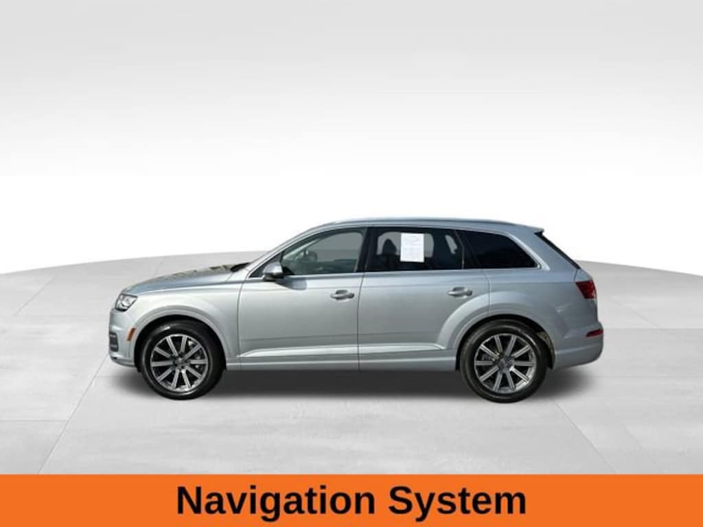 Florett Silver Metallic 2018 Audi Q7 3.0T Premium Plus quattro 3.0L TFSI V6 DOHC 8-Speed Automatic with Tiptronic quattro 10 Speakers, 3-Spoke Multifunction Steering Wheel w/Paddles, 3.204 Axle Ratio, 3D Bose Surround Sound System, 3rd row seats: bench, 7 Pin Connector for Towing Hitch, ABS brakes, AM/FM radio: SiriusXM, Audi Beam-Rings, Audi Connect CARE, Audi Connect PRIME & PLUS, Audi MMI Navigation Plus Package, Audi MMI Navigation Plus w/MMI Touch, Audi Side Assist w/Pre Sense Rear, Audi Smartphone Interface, Black Rubber All-Weather Floor Mats (Set of 4), Brake assist, Cold Weather Package, Delay-off headlights, Driver vanity mirror, Driver's Seat Mounted Armrest, Dual front side impact airbags, Electric Tilt/Telescopic Steering Column w/Memory, Electronic Stability Control, Exterior Parking Camera Rear, Front Bucket Seats, Front dual zone A/C, Front reading lights, Garage door transmitter: HomeLink, Heated Auto-Dimming Power Folding Exterior Mirrors, Heated Front Bucket Seats, Heated front seats, Heated Rear Seats, High Gloss Black/Gray Oak Inlays, Illuminated entry, Leather Seating Surfaces, Leather Shift Knob, LED Interior Lighting Package, Memory seat, Navigation System, Outside temperature display, Panic alarm, Passenger door bin, Passenger vanity mirror, Power driver seat, Power Liftgate, Power passenger seat, Power steering, Power Sunroof, Premium Plus Package, Rain sensing wipers, Rear air conditioning, Rear fog lights, Rear reading lights, Remote keyless entry, Roof rack: rails only, Security system, Speed control, Split folding rear seat, Steering wheel mounted audio controls, Tachometer, Tilt steering wheel, Towing Package, Traction control, Variably intermittent wipers, Wheels: 20 10-Spoke-Star Design Bi-Color.