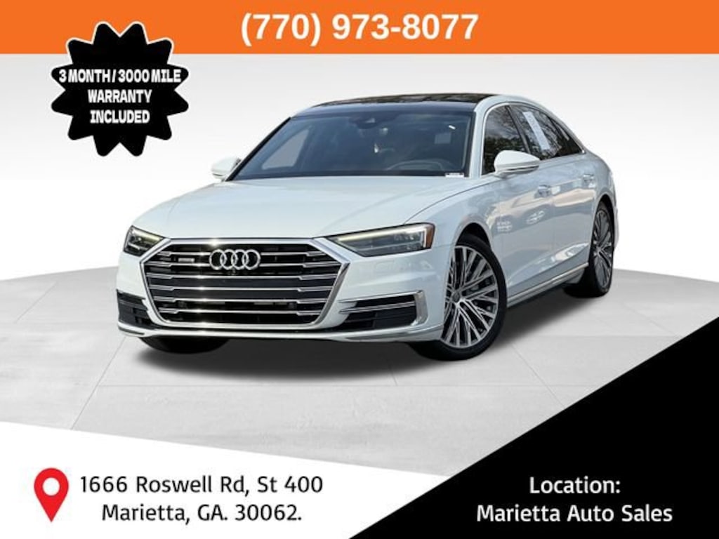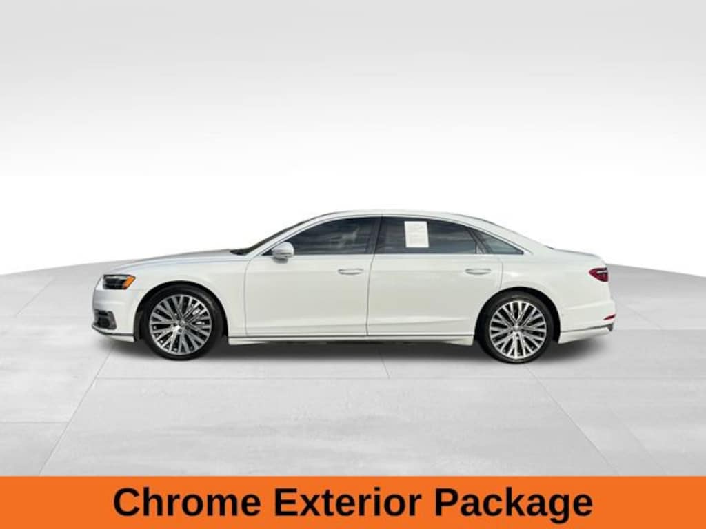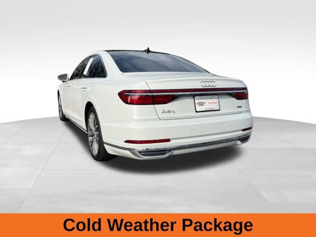 Glacier White Metallic 2019 Audi A8 L 55 quattro 3.0L V6 Turbocharged DOHC 24V ULEV II 335hp 8-Speed Automatic with Tiptronic quattro Sarder Brown w/Valetta Leather Seat Upholstery or Valcona Leather Seat Upholstery, 17 Speakers, Acoustic & Break Resistant Dual Pane Glass, Adaptive Windshield Wiping System, AM/FM radio: SiriusXM, Audi Head-Up Display, Audi Phone Box, Audi Pre Sense Basic & Rear, Audi Side Assist, Auto-dimming door mirrors, Bang & Olufsen 3D Premium Sound System, Bumpers: body-color, Chrome Exterior Package, Cold Weather Package, Compass, Driver door bin, Driver vanity mirror, Electronic Stability Control, Executive Package, Exterior Parking Camera Rear, Front Bucket Seats, Front reading lights, Heated 4-Spoke Multifunction Steering Wheel, Heated Front Surfaces, Heated Rear Outboard Seats, Illuminated entry, Memory seat, Passenger door bin, Power 2nd-Row Moonroof, Power driver seat, Radio data system, Rear air conditioning, Rear dual zone A/C, Remote keyless entry, Seatbelt memory, Security system, Speed control, Steering wheel memory, Top View Camera System, Traction control, Turn signal indicator mirrors, Valetta Leather Seat Upholstery, Ventilated Comfort Front Seats, Wheels: 20 20-Spoke Structure Style.