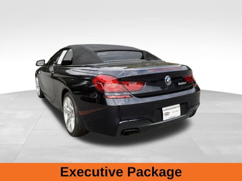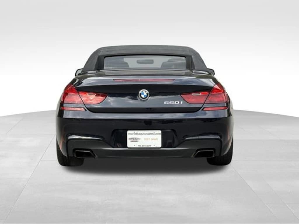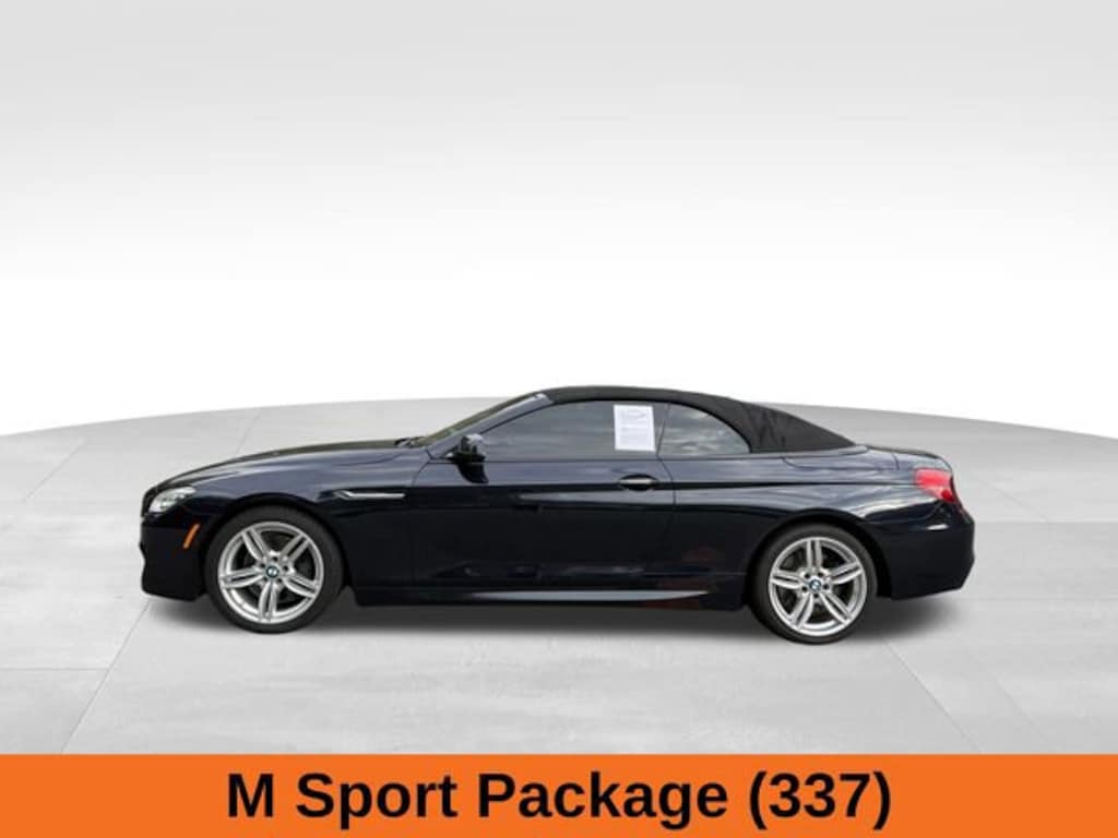 Carbon Black Metallic 2014 BMW 6 Series 650i 4.4L V8 32V TwinPower Turbo 8-Speed Sport Automatic with Shift Paddles RWD 12 Speakers, 19 x 8.5 Fr & 19 x 9.0 Rr (Style 351M) Wheels, 19 x 8.5 Star-Spoke (Style 367) Wheels, 3-Spoke Leather-Wrapped M Sport Steering Wheel, Active Cruise Control (ACC) (DISC), Active Front Seats, Adaptive Full LED Headlights, Aerodynamic Kit, AM/FM radio: SiriusXM, Automatic High Beams, Automatic temperature control, Bumpers: body-color, Ceramic Control Surrounds, Contrast Stitching, Convertible roof wind blocker, Driver door bin, Dynamic Digital Instrument Cluster, Electronic Stability Control, Executive Package, Exterior Parking Camera Rear, Front Bucket Seats, Front Center Armrest, Front dual zone A/C, Front Ventilated Seats, Garage door transmitter, Glass rear window, Head restraints memory, Head-Up Display (HUD), Illuminated entry, Increased Top Speed Limiter, Instrument Panel w/Leather Finish, Lane Departure Warning System, Leather Shift Knob, LED Fog Lights, M Sport Edition, M Sport Edition (7MH), M Sport Package, M Sport Package (337), Memory seat, Moonlight Black SoftTop, Nappa Leather Upholstery, Parking Assistant, Passenger vanity mirror, Power adjustable front head restraints, Power passenger seat, Radio data system, Rear anti-roll bar, Remote keyless entry, Security system, Shadowline Exterior Trim, Ski Bag, Soft-Close Automatic Doors, Speed control, Traction control, Without Lines Designation Outside.