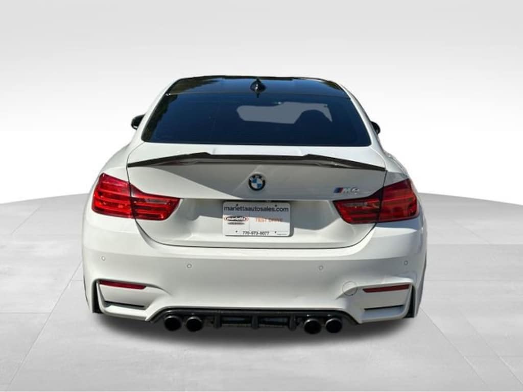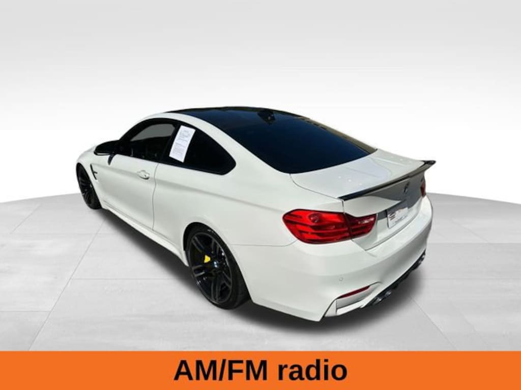 Alpine White 2015 BMW M4 3.0L I6 6-Speed Manual RWD 9 Speakers, ABS brakes, Air Conditioning, AM/FM radio, Auto-dimming Rear-View mirror, Brake assist, Cloth/Leather Upholstery, Delay-off headlights, Driver door bin, Driver vanity mirror, DVD-Audio, Electronic Stability Control, Emergency communication system, Front Bucket Seats, Front Center Armrest, Front dual zone A/C, Fully automatic headlights, Garage door transmitter, Heated door mirrors, Heated front seats, Heated Front Sport Seats, High intensity discharge headlights: Bi-xenon, Illuminated entry, Knee airbag, Low tire pressure warning, Memory seat, Navigation System, Occupant sensing airbag, Outside temperature display, Panic alarm, Passenger door bin, Power door mirrors, Power driver seat, Power passenger seat, Radio data system, Rain sensing wipers, Rear air conditioning, Rear anti-roll bar, Rear reading lights, Remote keyless entry, Security system, Speed control, Split folding rear seat, Sport steering wheel, Telescoping steering wheel, Tilt steering wheel, Traction control, Turn signal indicator mirrors, Variably intermittent wipers, Wheels: 18 x 9 Front & 18 x 10 Rear.