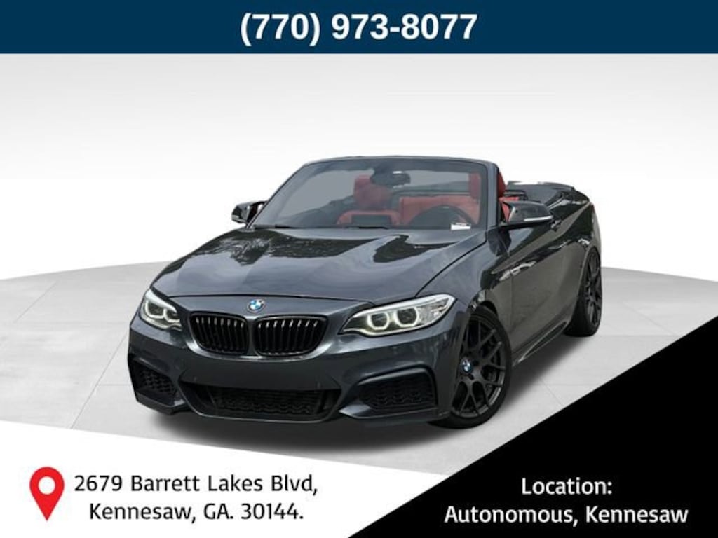 Mineral Gray Metallic 2016 BMW 2 Series M235i xDrive I6 8-Speed Automatic Sport AWD 4-Wheel Disc Brakes, 6 Speakers, ABS brakes, Advanced Real-Time Traffic Information, AM/FM radio: SiriusXM, Automatic temperature control, BMW Online & BMW Apps, Brake assist, Cold Weather Package, Convertible roof lining, Delay-off headlights, Driver Assistance Package, Electronic Stability Control, Front Bucket Seats, Front Center Armrest, Front dual zone A/C, Front Sport Seats, Garage door transmitter, Glass rear window, Hands-Free Bluetooth & USB Audio Connection, Heated Front Seats, Heated Steering Wheel, Hi-Fi Sound System, Illuminated entry, Instrument Cluster w/Extended Contents, Integrated roll-over protection, Leather steering wheel, Lumbar Support, Memory seat, Navigation System, Panic alarm, Park Distance Control, Passenger door bin, Power door mirrors, Power driver seat, Power Front Seats, Power passenger seat, Power windows, Radio: AM/FM/HD Stereo CD/MP3 Player, Rear anti-roll bar, Rear-View Camera, Remote keyless entry, Remote Services, Retractable Headlight Washers, Satellite Radio w/1 Year Subscription, Security system, SensaTec Upholstery, Speed control, Speed-sensing steering, Speed-Sensitive Wipers, Tachometer, Technology Package, Traction control, Wheels: 18 x 7.5 Fr & 18 x 8.0 Rr (Style 436M).