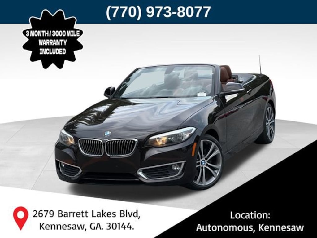 Sparkling Brown Metallic 2017 BMW 2 Series 230i 2.0L I4 16V TwinPower Turbo 8-Speed Automatic Sport RWD 6 Speakers, Advanced Real-Time Traffic Information, AM/FM radio, Ambient Lighting, Auto-Dimming Interior & Driver Exterior Mirrors, Auto-Dimming Rear-View Mirror, BMW Connected App Compatibility, BMW Online & BMW Apps, Brake assist, Comfort Access Keyless Entry, Delay-off headlights, Driver vanity mirror, Driving Assistance Package, Electronic Stability Control, Fineline Stream Wood Trim, Front Bucket Seats, Front Center Armrest, Front dual zone A/C, Front fog lights, Front reading lights, Front Sport Seats, Glass rear window, Hands-Free Bluetooth & USB Audio Connection, Heated door mirrors, Illuminated entry, Instrument Cluster w/Extended Contents, Lumbar Support, Luxury Line, Luxury Package, Navigation System, Occupant sensing airbag, Outside temperature display, Panic alarm, Park Distance Control, Passenger door bin, Power door mirrors, Power driver seat, Power Front Seats, Power passenger seat, Premium Package, Rain sensing wipers, Rear-View Camera, Remote keyless entry, Remote Services, Security system, SensaTec Upholstery, SiriusXM Satellite Radio, Speed control, Turn signal indicator mirrors, Universal Garage-Door Opener, Wheels: 17 x 7.5 Light Alloy (Style 379).