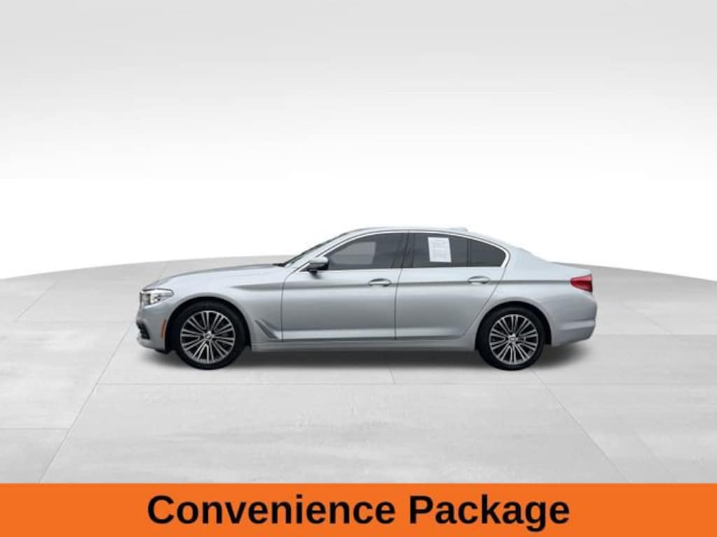 Cashmere Silver Metallic 2019 BMW 5 Series 530i 2.0L 4-Cylinder 8-Speed Automatic RWD Black w/Dakota Leather Upholstery, 12 Speakers, 4-Wheel Disc Brakes, ABS brakes, AM/FM radio, Apple CarPlay Compatibility w/1 Year Trial, Automatic temperature control, Comfort Access Keyless Entry, Convenience Package, Driver door bin, Dual front impact airbags, Electronic Stability Control, Exterior Parking Camera Rear, Front Bucket Seats, Front Center Armrest, Front dual zone A/C, Fully automatic headlights, Garage door transmitter, Genuine wood console insert, Heated Front Seats, HiFi Sound System, Illuminated entry, In-Dash CD Player, Memory seat, Occupant sensing airbag, Passenger door bin, Power driver seat, Power Sunroof, Power Tailgate, Power windows, Radio data system, Remote keyless entry, Security system, SensaTec Leatherette Upholstery, SiriusXM Satellite Radio, Speed control, Telescoping steering wheel, Tilt steering wheel, Traction control, Turn signal indicator mirrors, Wheels: 18 x 8 Double-Spoke (Style 634).