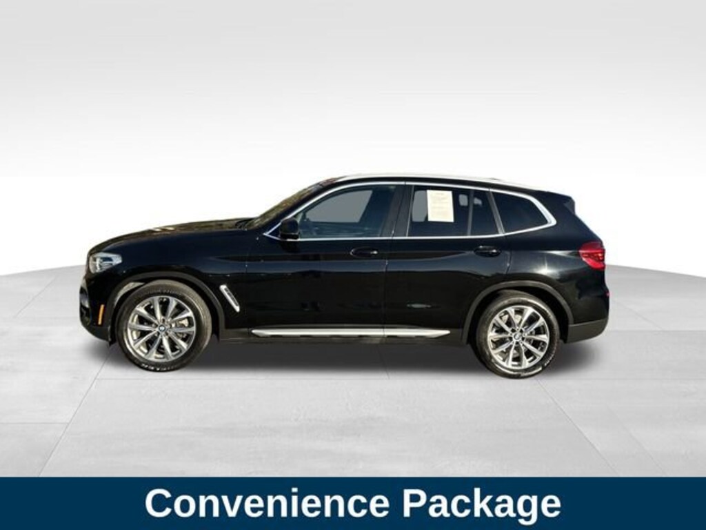 Jet Black 2019 BMW X3 sDrive30i 2.0L I4 TwinPower Turbo 8-Speed Automatic RWD 8-Speed Automatic, 12 Speakers, 3.39 Axle Ratio, Active Driving Assistant, AM/FM radio, Auto-dimming door mirrors, Auto-dimming Rear-View mirror, Brake assist, Convenience Package, Driver door bin, Dual Panel Moonroof, Electronic Stability Control, Exterior Parking Camera Rear, Front Bucket Seats, Front Center Armrest, Garage door transmitter, Genuine wood dashboard insert, Hands-Free Bluetooth & USB Audio Connection, Hi-Fi Sound System, Illuminated entry, Lane Departure Warning System, LED Headlights w/Cornering Lights, Lumbar Support, Memory seat, Passenger door bin, Power Liftgate, Power steering, Power windows, Radio data system, Radio: AM/FM Stereo w/HD, Rear air conditioning, Remote keyless entry, Roof rack: rails only, Security system, SensaTec Upholstery, SiriusXM Satellite Radio, Speed control, Spoiler, Traction control, Trip computer, Turn signal indicator mirrors, Wheels: 18 x 7.0 Y-Spoke (Style 688).
