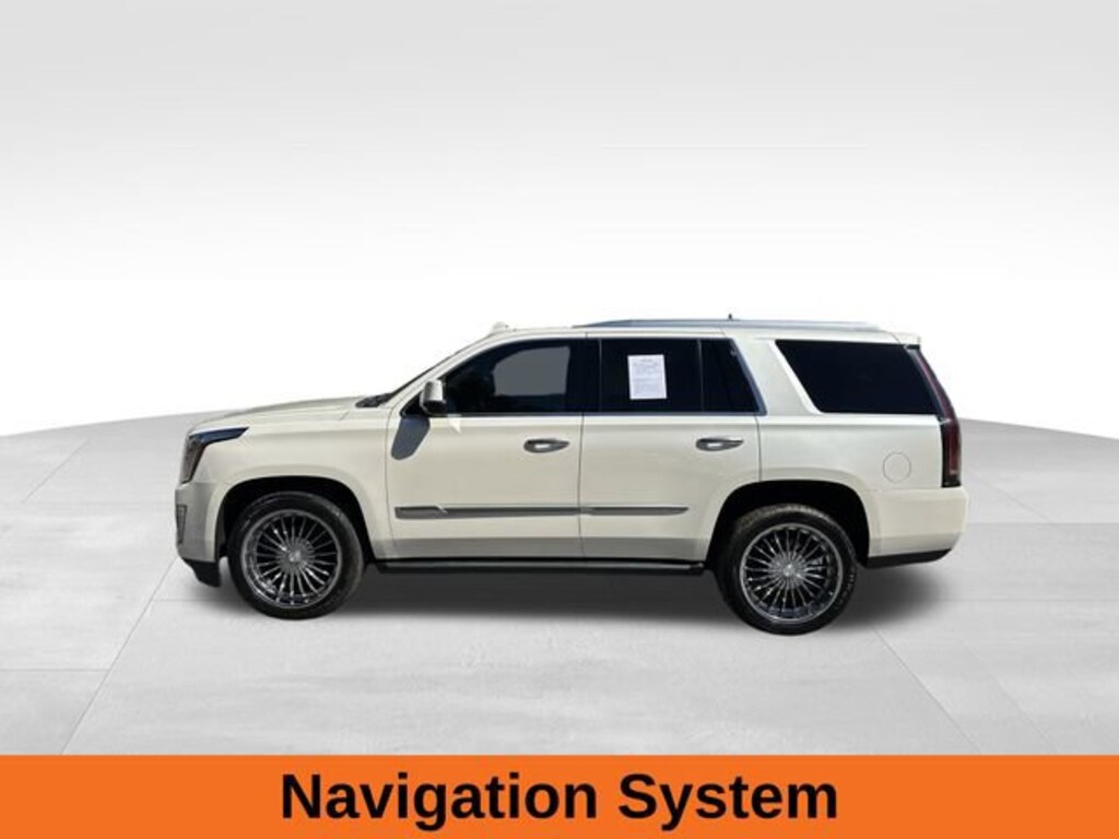 Recent Arrival! White Diamond Tricoat 2015 Cadillac Escalade Premium Vortec 6.2L V8 SIDI 8-Speed Automatic RWD Kona Brown/Jet Black w/Full Leather Seat Trim, 16 Speakers, 22 x 9 7-Spoke Ultra-Bright Aluminum Wheels, 3.23 Axle Ratio, 3rd row seats: split-bench, 4-Wheel Disc Brakes, A/V remote, Adaptive Full-Speed Range Cruise Control, Adjustable pedals, Air Conditioning, AM/FM radio: SiriusXM, Auto tilt-away steering wheel, Automatic Safety Belt Tightening, Automatic temperature control, Bose Centerpoint Surround Sound System, Brake assist, Compass, Delay-off headlights, Driver Assist Package, Driver Awareness Package, Driver door bin, Dual front impact airbags, Electronic Powered Parking Brake, Exterior Parking Camera Rear, Forward Collision Alert, Front & Rear Automatic Braking, Front anti-roll bar, Front Bucket Seats, Front Center Armrest w/Storage, Front dual zone A/C, Front reading lights, Garage door transmitter, Headphones, Heads-Up Display, Heated & Cooled Front Bucket Seats, Heated front seats, Heated rear seats, Illuminated Door Handles, Illuminated entry, IntelliBeam Headlamps, Lane Change Alert, Lane Departure Warning System, Leather Seating Surfaces, Leather Shift Knob, Leather steering wheel, Memory seat, Navigation System, Panic alarm, Passenger door bin, Pedal memory, Power Liftgate, Power passenger seat, Power steering, Power Sunroof, Power Tilt-Sliding Sunroof w/Express-Open/Close, Power windows, Power-Retractable Assist Steps, Preferred Equipment Group 1SC, Rain sensing wipers, Rear air conditioning, Rear Cross-Traffic Alert, Rear Seat Entertainment System, Reconfigurable 4-Color Head-Up Display, Roof rack: rails only, Second Row Bucket Seats, Security system, Side Blind Zone Alert, Speed control, Split folding rear seat, Steering wheel memory, Steering wheel mounted audio controls, Tachometer, Telescoping steering wheel, Theft-Deterrent Alarm System, Theft-Deterrent Package, Traction control, VAC Power 17 Disc Brakes, Vehicle Inclination Sensor, Vehicle Interior Movement Sensor, Ventilated front seats, Wheel Locks.