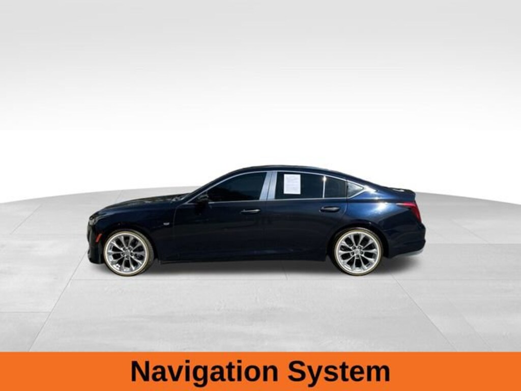 Dark Moon Blue Metallic 2021 Cadillac CT5 Premium Luxury 2.0L I4 Turbocharged DOHC 16V LEV3-SULEV30 237hp 10-Speed Automatic RWD 4-Wheel Antilock 4-Wheel Disc Brakes, 9 Speakers, AM/FM radio: SiriusXM with 360L, Apple CarPlay/Android Auto, Auto-dimming door mirrors, Automatic Emergency Braking, Automatic Stop/Start w/Disable, Body-Color Heated Pwr-Adjustable Outside Mirrors, Brake assist, Bumpers: body-color, Delay-off headlights, Driver 4-Way Power Lumbar Seat Adjuster, Driver door bin, Dual Diagonal Color Driver Information Center, Dual front impact airbags, Electronic Stability Control, Emergency communication system: OnStar and Cadillac connected services capable, Exterior Parking Camera Rear, Four wheel independent suspension, Front anti-roll bar, Front Bucket Seats, Front Center Armrest, Front dual zone A/C, Front Passenger 4-Way Power Lumbar Seat Adjuster, Front reading lights, Fully automatic headlights, Garage door transmitter, HD Rear Vision Camera, Heated door mirrors, Illuminated entry, Inside Rear-View Auto-Dimming Mirror, Knee airbag, Leather Seating Surfaces, Leather steering wheel, Leather Wrapped Steering Wheel, LED Reflective Windshield Alert, Manual Tilt & Telescoping Steering Column, Memory seat, Navigation System, Occupant sensing airbag, Outside temperature display, Overhead console, Panic alarm, Passenger door bin, Passenger vanity mirror, Power driver seat, Power passenger seat, Power windows, Preferred Equipment Group 1SD, Premium 9-Speaker Audio System Feature, Radio data system, Rain sensing wipers, Rear anti-roll bar, Rear Park Assist, Rear reading lights, Rear seat center armrest, Remote keyless entry, Speed control, Speed-sensing steering, Split folding rear seat, Steering Wheel Mounted Paddle Shift Controls, Tachometer, Telescoping steering wheel, Tilt steering wheel, Traction control, Trip computer, Turn signal indicator mirrors, Variably intermittent wipers, Wheels: 18 Alloy w/Manoogian Silver.