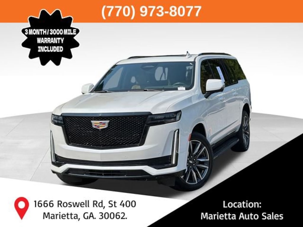 Crystal White Tricoat 2021 Cadillac Escalade ESV Sport 6.2L V8 10-Speed Automatic with Overdrive RWD 16.9 Diagonal OLED Infotainment Screen, 19 Speakers, 4-Way Power Driver Lumbar Seat Adjuster, 8-Way Power Driver Seat Adjuster, Air Ionizer, AKG Studio 19-Speaker Audio System, Apple CarPlay/Android Auto, Automatic Emergency Braking, Body-Color Door Handles, Door Lock & Latch Shields, Electronic Cruise Control w/Set & Resume Speed, Electronic Limited-Slip Differential, Electronic Stability Control, Enhanced Automatic Parking Assist, Front dual zone A/C, Garage door transmitter, Glass Breakage Sensor, Heads-Up Display, Hitch Guidance w/Hitch View, Illuminated entry, In-Vehicle Trailering System App, Integrated Trailer Brake Controller, Lane Keep Assist w/Lane Departure Warning, Memory seat, Navigation System, Power Liftgate, Power Panoramic Tilt-Sliding Sunroof, Power Sunroof, Preferred Equipment Group 1SC, Radio data system, Rear air conditioning, Rear Camera Mirror, Rear Camera Mirror Washer, Rear Cross Traffic Alert, Rear Seat Entertainment System, Reconfigurable Full-Color Head-Up Display, Remote keyless entry, Roof rack: rails only, Running Board Assist Steps, Security system, Speed control, Spoiler, Theft-Deterrent Alarm System, Traction control, Trailer Side Blind Zone Alert, Turn signal indicator mirrors, Vehicle Inclination Sensor, Vehicle Interior Movement Sensor.
