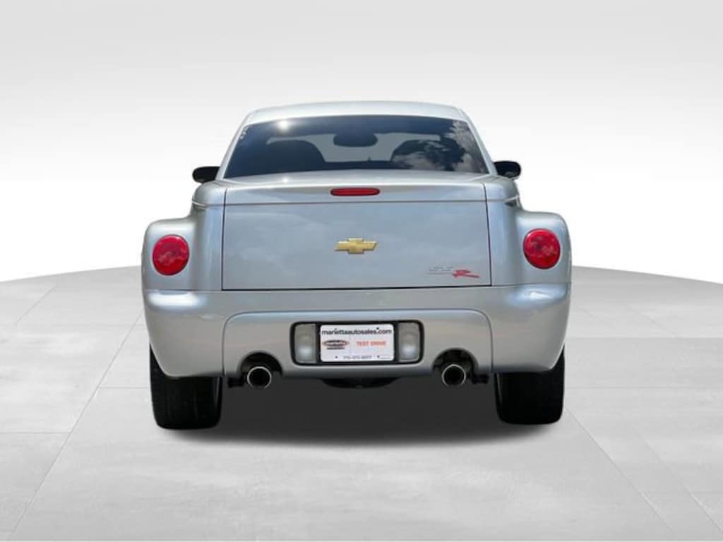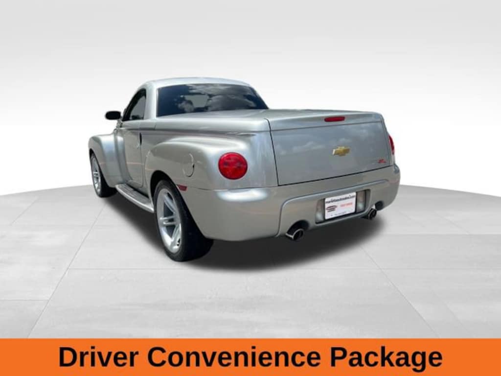 Ricochet Silver Metallic 2004 Chevrolet SSR Vortec 5.3L V8 SFI 4-Speed Automatic with Overdrive RWD 20'' Five Twin-Spoke Alloy wheels, 3.73 Rear Axle Ratio, 4 Speakers, ABS brakes, AM/FM radio, Auto-Dimming Inside Rear-View Mirror, Cargo Area Hard Liner, CD player, Convertible HardTop, Convertible roof lining, Driver Convenience Package, Driver door bin, Driver's Memory Seat, Dual front side impact airbags, Front 19 x 8 & Rear 20 x 10 Painted Aluminum Wheels, Front Bucket Seats, Front Center Armrest, Fully automatic headlights, Heated door mirrors, Heated Driver & Front Passenger Seats, HomeLink Wireless Control System, Illuminated entry, Panic alarm, Power door mirrors, Power Heated Color-Keyed Outside Rear-View Mirrors, Preferred Equipment Group 1SB, Radio data system, Rear window defroster, Remote keyless entry, Satin Chrome Appearance Engine Cover Insert, Sport Suspension Package, Traction control.