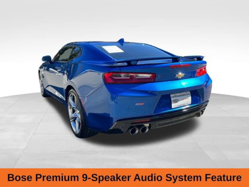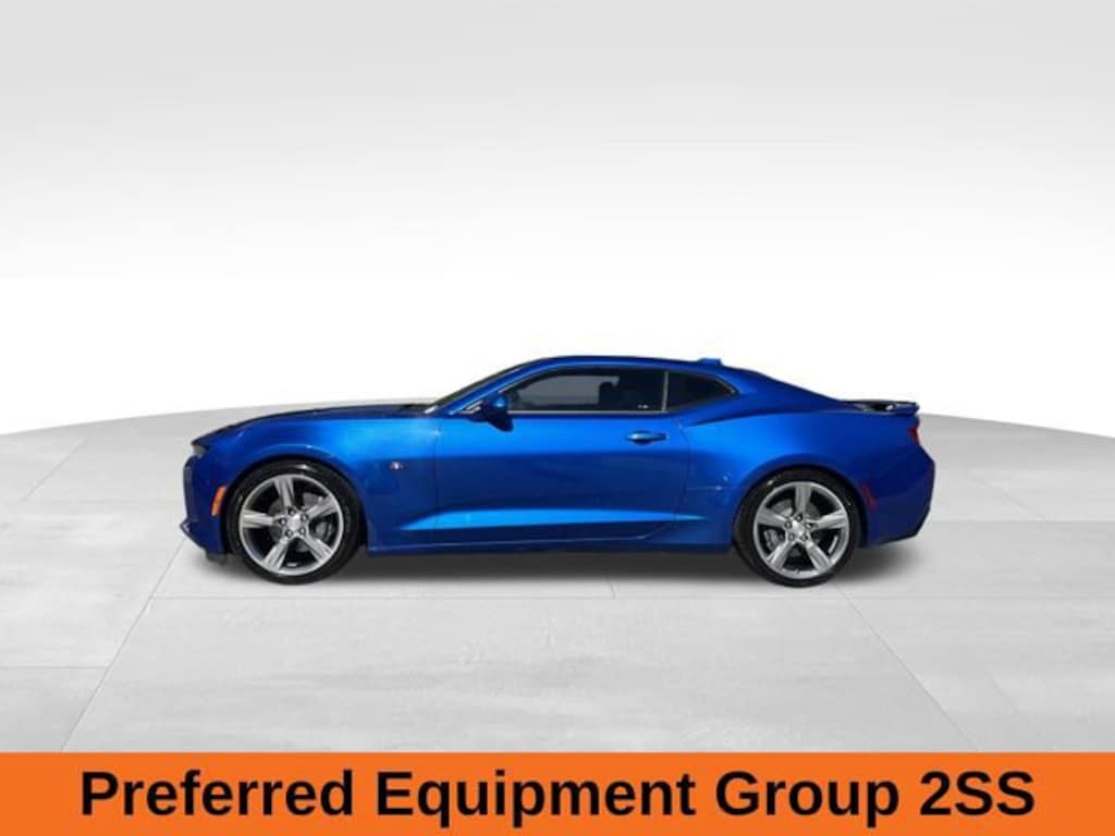 Hyper Blue Metallic 2018 Chevrolet Camaro SS 2SS 6.2L V8 8-Speed Automatic RWD 2 USB Ports & Auxiliary Input Jack, 2.77 Rear Axle Ratio, 4-Wheel Disc Brakes, 6-Way Power Front Passenger Seat Adjuster, 8-Way Power Driver Seat Adjuster, 9 Speakers, All-Weather Cargo Mat w/Camaro Logo (LPO), AM/FM radio: SiriusXM, Apple CarPlay/Android Auto, Automatic temperature control, Bose Premium 9-Speaker Audio System Feature, Compass, Driver door bin, Dual Mode Performance Exhaust, Electronic Stability Control, Exterior Parking Camera Rear, Front Bucket Seats, Front Center Armrest, Front dual zone A/C, Front Sport Bucket Seats, Garage door transmitter, Heated door mirrors, Heated Driver & Front Passenger Seats, Illuminated entry, Passenger door bin, Power windows, Preferred Equipment Group 2SS, Premium audio system: Chevrolet MyLink, Radio data system, Remote keyless entry, Security system, Speed control, Spoiler, Traction control, Ventilated Driver & Front Passenger Seats, Ventilated front seats, Wheels: 20 x 8.5 Fr & 20 x 9.5 Rr 5-Spoke Alum.