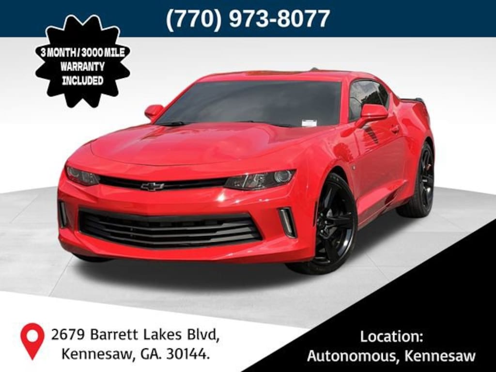 Red Hot 2018 Chevrolet Camaro 1LT 2.0L Turbocharged 8-Speed Automatic RWD 18 Silver-Painted Aluminum Wheels, 6 Speakers, 6-Speaker Audio System Feature, 6-Way Power Front Passenger Seat Adjuster, 8-Way Power Driver Seat Adjuster, All-Weather Floor Mats, Apple CarPlay/Android Auto, Cloth Seat Trim, Compass, Driver door bin, Electronic Stability Control, Exterior Parking Camera Rear, Front Center Armrest, Front Sport Bucket Seats, Illuminated entry, Power steering, Power windows, Preferred Equipment Group 1LT, Premium audio system: Chevrolet MyLink, Radio data system, Rear anti-roll bar, Remote keyless entry, Speed control, Tire Inflation Kit, Traction control, Variably intermittent wipers.