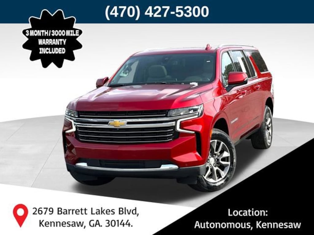 Cherry Red Tintcoat 2021 Chevrolet Suburban LT EcoTec3 5.3L V8 10-Speed Automatic with Overdrive RWD 10-Way Power Driver & Passenger Seat Adjusters, 1st & 2nd Row Color-Keyed Carpeted Floor Mats, 2nd Row Pwr Release 60/40 Split-Folding Bench Seat, 3.23 Rear Axle Ratio, 3rd Row 60/40 Power-Folding Split-Bench, 3rd row seats: split-bench, 9 Speakers, Advanced Trailering Package, Advanced Trailering System, AM/FM radio: SiriusXM with 360L, Apple CarPlay/Android Auto, Auto-Dimming Inside Rear-View Mirror, Auto-dimming Rear-View mirror, Automatic Heated Steering Wheel, Bright Front & Rear Door Sill Plates, Color-Keyed Carpeting Floor Covering, Driver & Front Outboard Passenger Airbags, Driver Alert Package, Driver door bin, Dual-Pane Power Panoramic Sunroof, Electronic Stability Control, Extra Capacity Cooling System, Floor Console w/Storage Area, Front & Rear Park Assist, Front Bucket Seats, Front Center Armrest, Front dual zone A/C, Front reading lights, Garage door transmitter, Hands-Free Rear Power Programmable Liftgate, HD Radio, HD Surround Vision, Heated 2nd Row Outboard Seats, Heated Driver & Front Passenger Seats, Heated front seats, Hitch Guidance w/Hitch View, Illuminated entry, Infotainment Display, Integrated Trailer Brake Controller, Lane Change Alert w/Side Blind Zone Alert, Lane Keep Assist w/Lane Departure Warning, Leather Seating Surfaces, Leather-Wrapped Steering Wheel, LED Daytime Running Lamps, LT Signature Package, Luxury Package, Max Trailering Package, Memory seat, Memory Settings, Memory Settings For Driver, Outside Heated Power-Adjustable Mirrors, Panic alarm, Passenger door bin, Passenger vanity mirror, Power driver seat, Power Liftgate, Power passenger seat, Power Tilt & Telescopic Steering Column, Preferred Equipment Group 1LT, Rain sensing wipers, Rear air conditioning, Rear Cross Traffic Alert, Rear Pedestrian Alert, Rear seat center armrest, Remote keyless entry, Remote Start, Security system, SiriusXM Radio w/360L, Speed control, Speed-sensing steering, Split folding rear seat, Tilt steering wheel, Traction control, Universal Home Remote, Wheels: 20 x 9 Painted Aluminum.