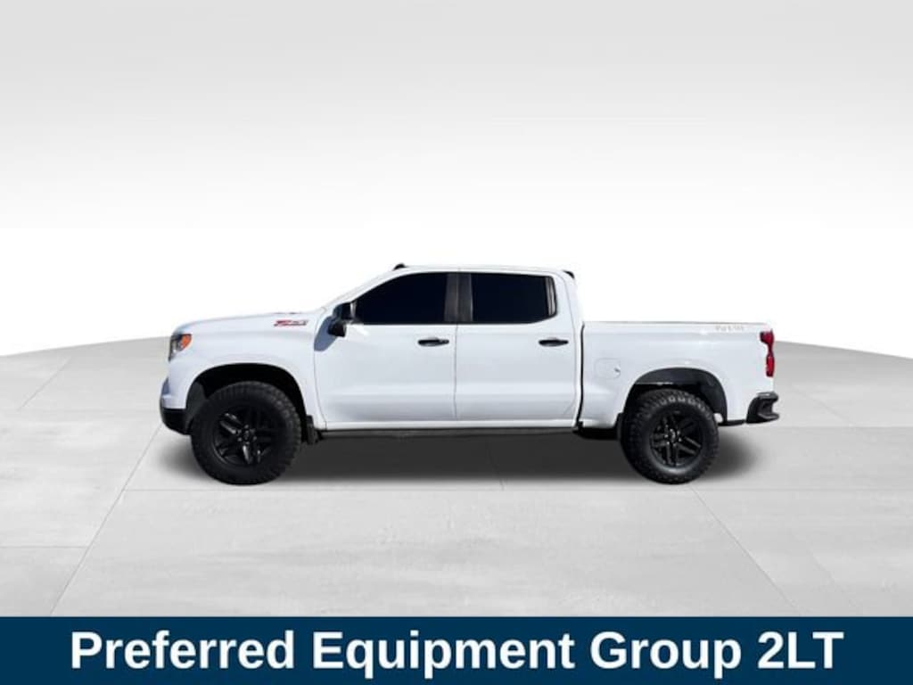 Summit White 2023 Chevrolet Silverado 1500 LT Trail Boss 2.7L Turbo 8-Speed Automatic 4WD 8-Speed Automatic, 4WD, Jet Black w/Cloth Seat Trim, 10-Way Power Driver Seat w/Lumbar, 12.3 Multicolor Reconfigurable Digital Display, 120-Volt Bed Mounted Power Outlet, 120-Volt Instrument Panel Power Outlet, 3.42 Rear Axle Ratio, 6-Speaker Audio System, All-Weather Floor Liner (LPO) (AAK), Apple CarPlay/Android Auto, Auto-Locking Rear Differential, Bluetooth® For Phone, Chevrolet Connected Access Capable, Color-Keyed Carpeting Floor Covering, Compass, Convenience Package, Deep-Tinted Glass, Driver door bin, Dual Rear USB Ports (Charge Only), Dual-Zone Automatic Climate Control, Electric Rear-Window Defogger, Electrical Steering Column Lock, Electronic Cruise Control, Electronic Stability Control, EZ Lift Power Lock & Release Tailgate, Front LED Fog Lamps, HD Rear Vision Camera, Heated Driver & Front Outboard Passenger Seats, Heated Power-Adjustable Outside Mirrors, Heated Steering Wheel, Heavy-Duty Air Filter, High Gloss Black Mirror Caps, Hill Descent Control, Hitch Guidance, Illuminated entry, Inside Rear-View Mirror w/Tilt, Keyless Open & Start, LED Cargo Area Lighting, OnStar & Chevrolet Connected Services Capable, Passenger door bin, Performance Red Recovery Hooks, Power Front Windows w/Driver Express Up/Down, Power Front Windows w/Passenger Express Down, Power Rear Windows w/Express Down, Preferred Equipment Group 2LT, Rear 60/40 Folding Bench Seat (Folds Up), Rear step bumper, Remote Vehicle Starter System, Security system, SiriusXM w/360L, Split folding rear seat, Standard Tailgate, Steering Wheel Audio Controls, Suspension Package, Theft Deterrent System (Unauthorized Entry), Traction control, Trailering Package, Wheels: 18 x 8.5 Black Painted Aluminum, Wi-Fi Hot Spot Capable, Wireless Phone Projection, Wrapped Steering Wheel.