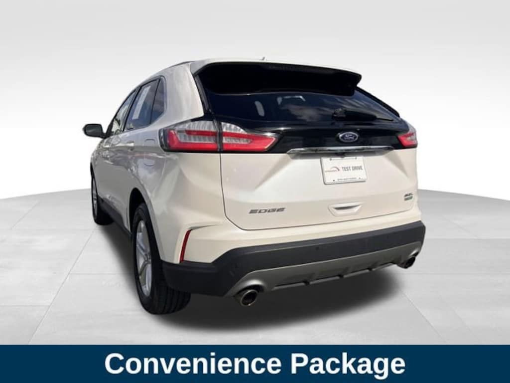 Recent Arrival! White Platinum Metallic Tri-Coat 2019 Ford Edge SEL EcoBoost 2.0L I4 GTDi DOHC Turbocharged VCT 8-Speed Automatic FWD 110V/150W AC Power Outlet, 2 Driver Configurable 4.2 Color LCD Displays, 6 Speakers, ActiveX Seating Material Heated Bucket Seats, Adaptive Cruise Control w/Stop & Go, AM/FM radio: SiriusXM, AppLink/Apple CarPlay and Android Auto, Automatic temperature control, Axle Ratio: TBA, Compass, Convenience Package, Driver door bin, Electronic Stability Control, Equipment Group 201A, Evasive Steering Assist, Foot-Activated Hands-Free Liftgate, Ford Co-Pilot360 Assist+, Front dual zone A/C, Heated door mirrors, Lane Centering, LED Signature Daytime Running Lamps, Outside temperature display, Overhead console, Passenger door bin, Perimeter Alarm, Premium 9 Speaker Audio System, Radio: AM/FM Stereo/MP3 Capable, Remote keyless entry, Remote Start System, Roof rack: rails only, SiriusXM Traffic & Travel Link, Speed control, Split folding rear seat, Spoiler, SYNC 3 Communications & Entertainment System, Turn signal indicator mirrors, Universal Garage Door Opener (UGDO), Voice-Activated Touchscreen Navigation System, Wheels: 18 Sparkle Silver-Painted Aluminum, Wireless Charging Pad.