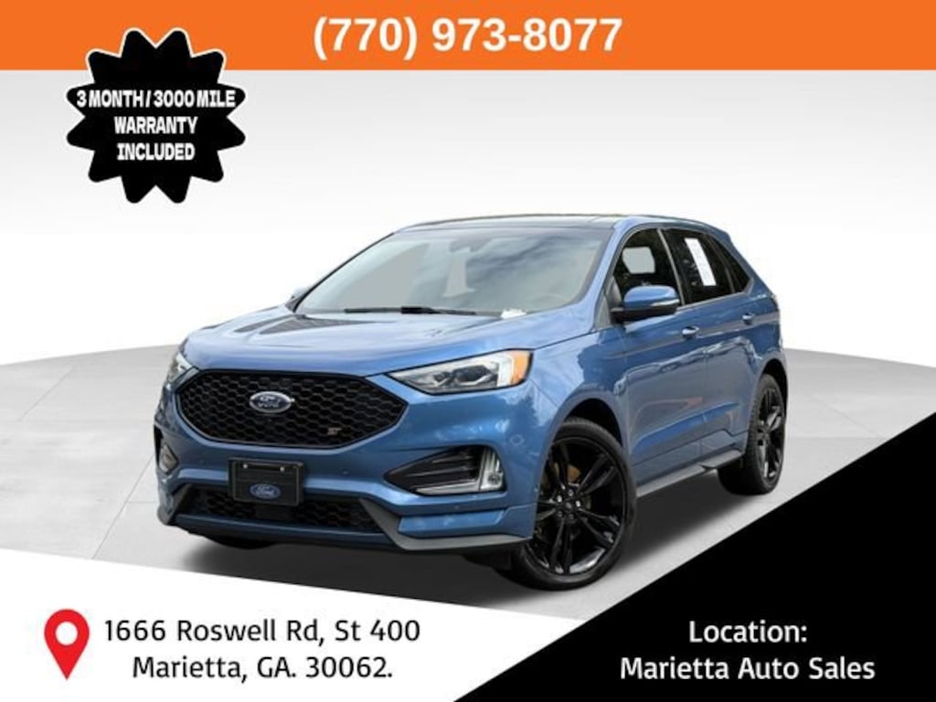Ford Performance Blue Metallic 2019 Ford Edge ST 2.7L V6 EcoBoost 8-Speed Automatic AWD AWD, 110V/150W AC Power Outlet, 12 Speakers, Adaptive Cruise Control w/Stop & Go, Adaptive LED Headlamps, AM/FM radio: SiriusXM, AppLink/Apple CarPlay and Android Auto, Auto-Dimming Driver's Sideview Mirror, Axle Ratio: TBA, Compass, Cooled Front Seats, Driver door bin, Electronic Stability Control, Enhanced Active Park Assist, Equipment Group 401A, Evasive Steering Assist, Foot-Activated Hands-Free Liftgate, Front 180 Degree Camera, Front Bucket Seats, Front dual zone A/C, Heated door mirrors, Heated front seats, Heated Rear-Seats, Illuminated entry, Lane Centering, Memory seat, Panoramic Vista Roof, Passenger door bin, Perimeter Alarm, Power Liftgate, Radio: B&O Sound System by Bang & Olufsen, Rear Parking Sensors, Remote keyless entry, Remote Start System, Roof rack: rails only, SiriusXM Radio, SiriusXM Traffic & Travel Link, Speed control, Spoiler, SYNC 3 Communications & Entertainment System, Traction control, Turn signal indicator mirrors, Universal Garage Door Opener (UGDO), Voice-Activated Touchscreen Navigation System, Wheels: 20 Bright-Machined Aluminum, Wireless Charging Pad.