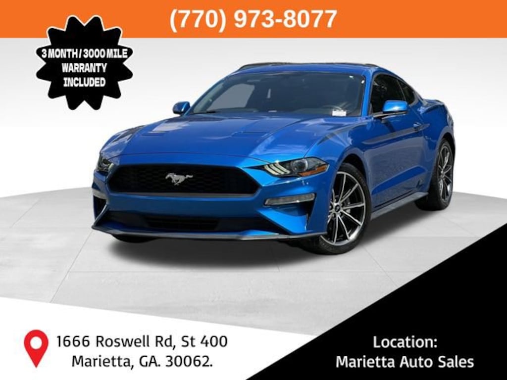 Velocity Blue Metallic 2019 Ford Mustang EcoBoost EcoBoost 2.3L I4 GTDi DOHC Turbocharged VCT 10-Speed Automatic RWD 6 Speakers, Active Valve Performance Exhaust, AM/FM radio, AM/FM Stereo w/MP3 Player, Body-Color Blade Decklid Spoiler, Brake assist, Bumpers: body-color, Cloth Bucket Seats, Delay-off headlights, Driver vanity mirror, Dual front impact airbags, Dual-Zone Automatic Temperature Control, Ebony Tape Stripe, Electronic Stability Control, Equipment Group 101A, Exterior Parking Camera Rear, Four wheel independent suspension, Front anti-roll bar, Front Bucket Seats, Front Center Armrest, Front reading lights, Fully automatic headlights, Illuminated entry, Occupant sensing airbag, Panic alarm, Passenger door bin, Power windows, Rear anti-roll bar, Remote keyless entry, Reverse Sensing System, Security system, SiriusXM Radio, Speed control, Speed-sensing steering, Speed-Sensitive Wipers, Split folding rear seat, SYNC 3 Communications & Entertainment System, Telescoping steering wheel, Traction control, Trip computer, Variably intermittent wipers, Wheel & Stripe Package, Wheels: 18 x 8 Machined-Face Aluminum.