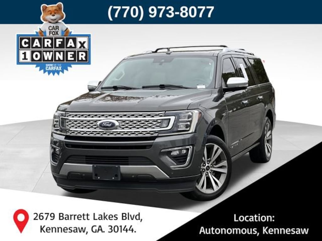 Magnetic Metallic 2020 Ford Expedition Max Platinum EcoBoost 3.5L V6 GTDi DOHC 24V Twin Turbocharged 10-Speed Automatic RWD 12 Speakers, 3rd row seats: split-bench, AM/FM radio: SiriusXM, Compass, Driver door bin, Electronic Limited Slip w/3.73 Axle Ratio, Electronic Stability Control, Equipment Group 600A, Exterior Parking Camera Rear, Front Bucket Seats, Garage door transmitter, Heated front seats, Heavy-Duty Engine Radiator, Heavy-Duty Trailer Tow Package, Illuminated entry, Integrated Trailer Brake Controller, Memory seat, Navigation System, Pedal memory, Power Liftgate, Power passenger seat, Power Sunroof, Pro Trailer Backup Assist, Radio data system, Rear audio controls, Remote keyless entry, Roof rack, Security system, Speed control, Traction control, Turn signal indicator mirrors, Wheels: 22 6-Spoke Painted Machined-Face Aluminum.