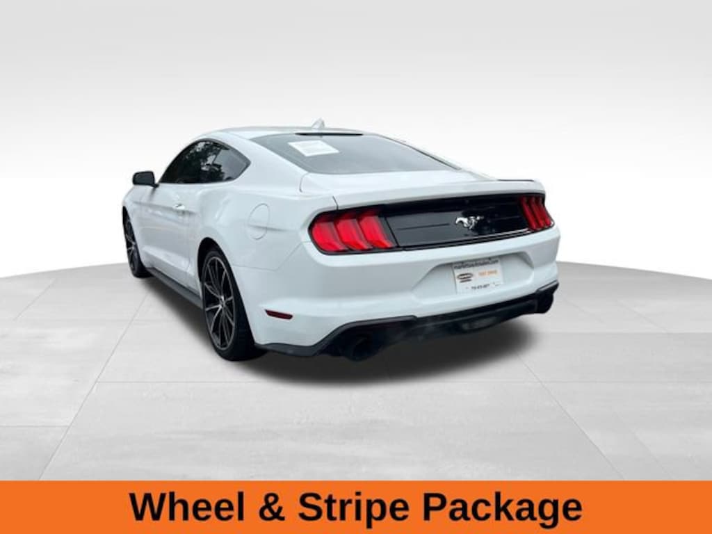 Oxford White 2020 Ford Mustang EcoBoost 2.3L I4 Turbocharged EcoBoost 10-Speed Automatic RWD 4-Wheel Disc Brakes, AM/FM Stereo, Auto-dimming Rear-View mirror, Compass, Driver door bin, Electronic Stability Control, Equipment Group 100A, Exterior Parking Camera Rear, Front Bucket Seats, Front Center Armrest, Illuminated entry, Passenger door bin, Power door mirrors, Power windows, Radio data system, Remote keyless entry, Security system, Speed control, SYNC Communications & Entertainment System, Tilt steering wheel, Traction control, Wheel & Stripe Package, Wheels: 19 x 8.5 Machined-Face Aluminum.
