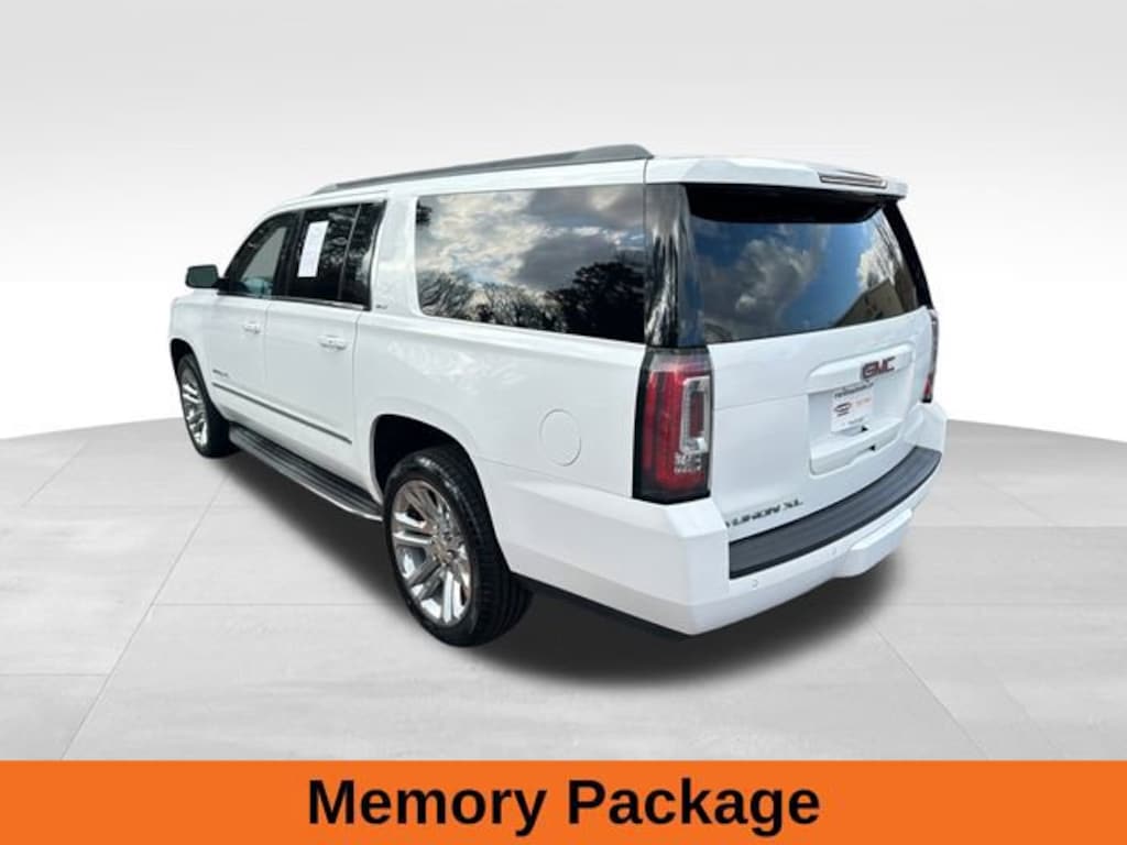 Summit White 2019 GMC Yukon XL SLT EcoTec3 5.3L V8 6-Speed Automatic Electronic with Overdrive 4WD 4WD, 22 6-Spoke Split Chrome (LPO) Wheels, 3.42 Rear Axle Ratio, 3rd Row DVD Screen, 3rd row seats: split-bench, 4-Wheel Antilock Disc Brakes, 5 Auxiliary 12-volt Power Outlets, 9 Speakers, Air Conditioning, AM/FM radio: SiriusXM, Apple CarPlay/Android Auto, Auto High-beam Headlights, Auto-dimming door mirrors, Black Assist Steps w/Chrome Strip, Bose Premium 9-Speaker System, Brake assist, Bright Bodyside Moldings, Bumpers: body-color, Chrome Grille Insert (LPO), Compass, Driver door bin, Electronic Stability Control, Enhanced Driver Alert Package, Exterior Parking Camera Rear, Forward Collision Alert, Front Bucket Seats, Front Center Armrest, Front dual zone A/C, Front fog lights, Front reading lights, Full-Feature Reclining Bucket Seats, Fully automatic headlights, Garage door transmitter, Hands Free Power Programmable Rear Liftgate, HD Trailering Package, Heated & Ventilated Driver & Front Passenger Seats, Heated front seats, Heated Leather-Wrapped Steering Wheel, Heated rear seats, Heated steering wheel, Illuminated entry, Inside Rear-View Auto-Dimming Mirror, Integrated Trailer Brake Controller, IntelliBeam Automatic High Beam On/Off, Lane Change Alert w/Side Blind Zone Alert, Lane Keep Assist w/Lane Departure Warning, License Plate Front Mounting Package, Low Speed Forward Automatic Braking, Memory Package, Memory seat, Open Road Package, Panic alarm, Passenger door bin, Passive Entry System, Pedal memory, Perforated Leather-Appointed Seat Trim, Polished Exhaust Tip, Power driver seat, Power Liftgate, Power passenger seat, Power Release 2nd Row 60/40 Split-Folding Bench Seat, Power Release 2nd Row Bucket Seats, Power steering, Power Tilt & Telescopic Steering Column, Power Tilt-Sliding Sunroof w/Express-Open/Close, Power windows, Power-Adjustable Pedals For Accelerator & Brake, Preferred Equipment Group 4SA, Premium Edition, Premium Smooth Ride Suspension Package, Push Button Keyless Start, Rain sensing wipers, Rear air conditioning, Rear Cross Traffic Alert, Rear Seat Blu-Ray/DVD Entertainment System, Rear window wiper, Remote Keyless Entry, Remote keyless entry, Security system, Speed control, Split folding rear seat, Standard Suspension Package, Steering wheel memory, Steering wheel mounted audio controls, Tachometer, Tilt steering wheel, Traction control, Universal Home Remote, Variably intermittent wipers, Ventilated front seats.