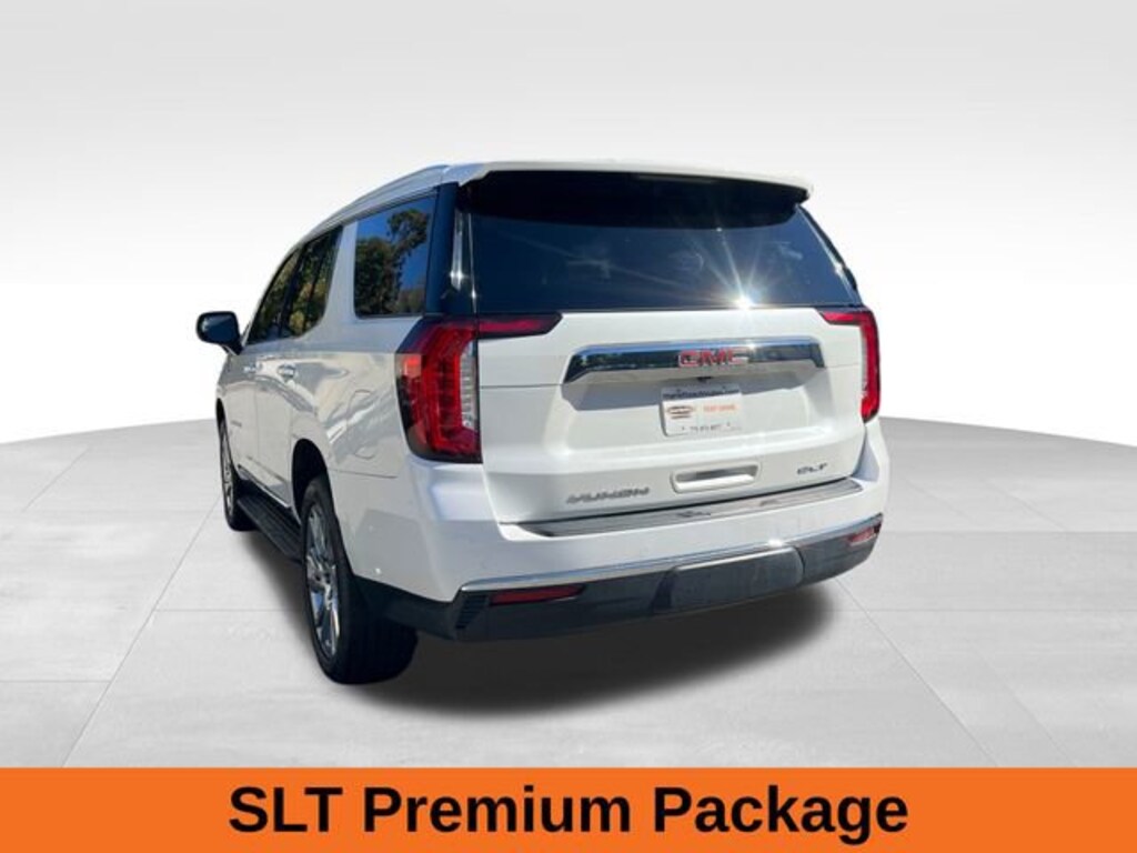 White Frost Tricoat 2021 GMC Yukon SLT EcoTec3 5.3L V8 10-Speed Automatic with Overdrive RWD 12-Way Power Seat Adjusters, 2 Presets For Outside Rearview Mirrors, 2 Presets For Power Driver Seat, 3.23 Rear Axle Ratio, 3rd Row 60/40 Power-Folding Split-Bench Seat, 9 Speakers, AM/FM radio: SiriusXM with 360L, Apple CarPlay/Android Auto, Automatic temperature control, Bose 9-Speaker Stereo Audio System Feature, Bright Chrome Bodyside Moldings, Bright Front & Rear Door Sill Plates, Chrome Door Handles w/Body-Color Strip, Compass, Driver door bin, Dual-Pane Panoramic Power Sunroof, Electronic Stability Control, Following Distance Indicator, Front & Rear Park Assist, Front dual zone A/C, Front reading lights, Garage door transmitter, Hands-Free Power Programmable Rear Liftgate, HD Surround Vision, Heated & Ventilated Driver & Front Passenger Seats, Heated 2nd Row Outboard Position Seats, Heated Automatic Steering Wheel, Heated Driver & Front Passenger Seats, Inside Rear-View Auto-Dimming Mirror, IntelliBeam Automatic High Beam On/Off, Not Equipped w/Automatic Stop/Start, Outside Heated Power-Adjustable Mirrors, Passenger door bin, Power door mirrors, Power Liftgate, Power Release 2nd Row 60/40 Split-Folding Bench Seat, Power Tilt & Telescopic Steering Column, Power windows, Preferred Equipment Group 4SA, Rear air conditioning, Rear Pedestrian Alert, Remote keyless entry, Roof rack: rails only, Safety Alert Seat, Security system, SLT Luxury Package, SLT Premium Package, Speed control, Spoiler, Traction control, Universal Home Remote, Wheels: 22 Black Gloss w/Chrome Inserts (LPO).