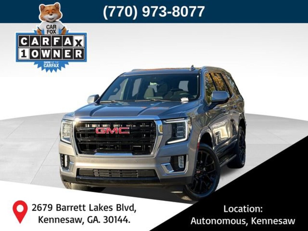 Satin Steel Metallic 2022 GMC Yukon SLE EcoTec3 5.3L V8 10-Speed Automatic with Overdrive RWD 3.23 Rear Axle Ratio, 3rd row seats: split-bench, 6 Speakers, 6-Speaker Audio System Feature, AM/FM Stereo, Apple CarPlay/Android Auto, Automatic Stop/Start, Automatic temperature control, Cloth Seat Trim, Compass, Driver door bin, Electronic Stability Control, Front Center Armrest, Front dual zone A/C, GMC Pro Safety Plus Package, Illuminated entry, Lane Change Alert w/Side Blind Zone Alert, Lane Departure Warning System, Navigation System, Passenger door bin, Power passenger seat, Power steering, Power windows, Preferred Equipment Group 3SA, Rear air conditioning, Rear Cross Traffic Alert, Rear window wiper, Remote keyless entry, Roof rack: rails only, Security system, SiriusXM w/360L, Speed control, Speed-sensing steering, Spoiler, Start/Stop System Disable Button, Traction control, Variably intermittent wipers, Wheels: 18 x 8.5 6-Spoke Machined Aluminum.