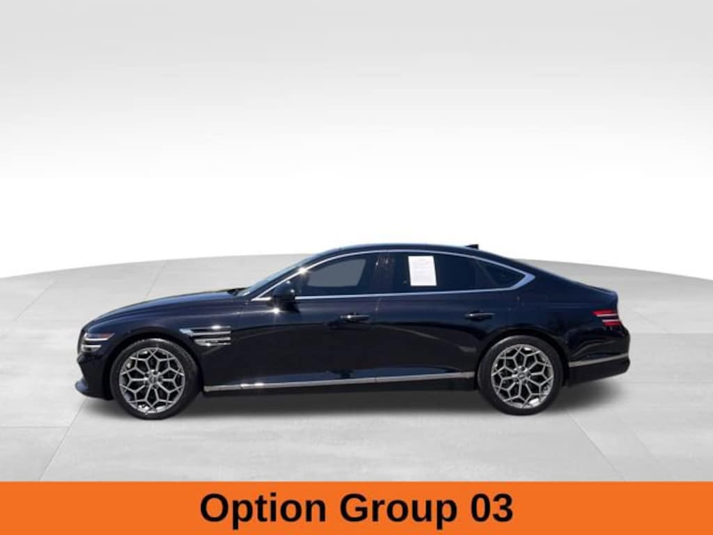Recent Arrival! Vik Black 2022 Genesis G80 2.5T 2.5L DOHC 8-Speed Automatic AWD 12 Speakers, Advanced Package, AM/FM radio: SiriusXM, Android Auto & Apple CarPlay, Auto tilt-away steering wheel, Automatic temperature control, Blind-Spot View Monitor, Compass, Driver door bin, Driver Ergo Motion Seat, Driver Seat Power Bolster & Cushion Extension, Electronic Stability Control, Exterior Parking Camera Rear, Front Bucket Seats, Front Center Armrest, Front dual zone A/C, Front Passenger Seat Walk-In Device, Front Wireless Device Charger, Garage door transmitter: HomeLink, Genesis Digital Key (NFC), Heated front seats, Illuminated entry, Leather Seating Surfaces, Leatherette Seating Surfaces, Option Group 03, Panic alarm, Parking Collision - Avoidance Assist, Power Door Closure, Prestige Package, Radio data system, Rear Bumper Applique, Rear Occupant Alert (Ultrasonic), Remote keyless entry, Remote Smart Parking Assist, Reversible Cargo Tray, Security system, Speed control, Steering wheel memory, Surround View Monitor, Traction control, Turn signal indicator mirrors, Wheels: 18x8.0J Alloy.