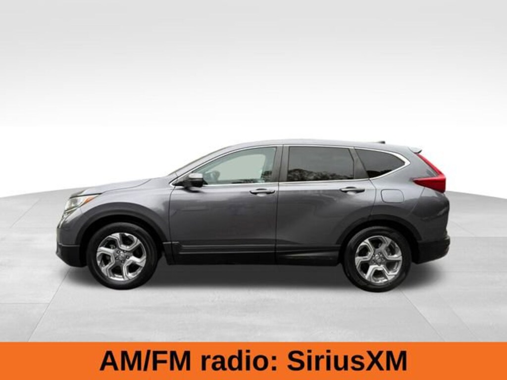 Modern Steel Metallic 2019 Honda CR-V EX 1.5L I4 DOHC 16V CVT FWD 18 Alloy Wheels, 5.64 Axle Ratio, 6 Speakers, AM/FM radio: SiriusXM, Apple CarPlay/Android Auto, Blind Spot Information (BSI) System warning, Brake assist, Cloth Seat Trim, Compass, Driver door bin, Electronic Stability Control, Exterior Parking Camera Rear, Forward collision: Collision Mitigation Braking System (CMBS) + FCW mitigation, Front Bucket Seats, Front Center Armrest, Front dual zone A/C, Fully automatic headlights, Heated Front Bucket Seats, Illuminated entry, Lane departure: Lane Keeping Assist System (LKAS) active, Passenger vanity mirror, Power Sunroof, Power windows, Radio data system, Remote keyless entry, Security system, Speed control, Split folding rear seat, Spoiler, Traction control, Turn signal indicator mirrors.