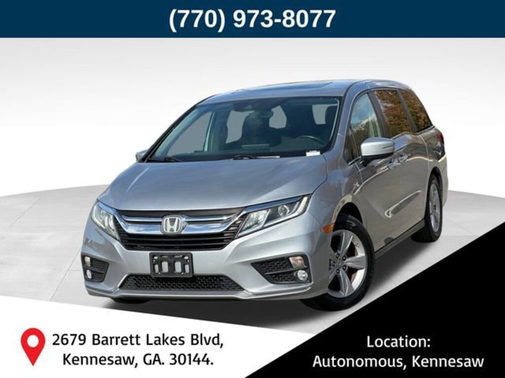 Lunar Silver Metallic 2019 Honda Odyssey EX-L w/Navigation and Rear Entertainment System 3.5L V6 SOHC i-VTEC 24V 9-Speed Automatic FWD 3rd row seats: split-bench, 4.33 Axle Ratio, 7 Speakers, AM/FM radio: SiriusXM, Apple CarPlay/Android Auto, Auto-dimming Rear-View mirror, Brake assist, Driver door bin, Driver vanity mirror, Driver's Seat Mounted Armrest, Electronic Stability Control, Exterior Parking Camera Rear, Forward collision: Collision Mitigation Braking System (CMBS) + FCW mitigation, Front Bucket Seats, Front dual zone A/C, Garage door transmitter: HomeLink, Illuminated entry, Leather Seat Trim, Low tire pressure warning, Occupant sensing airbag, Passenger door bin, Power door mirrors, Power driver seat, Power Liftgate, Power passenger seat, Power steering, Power Sunroof, Radio data system, Rear air conditioning, Remote keyless entry, Security system, Speed control, Speed-sensing steering, Split folding rear seat, Spoiler, Traction control, Trip computer, Turn signal indicator mirrors, Variably intermittent wipers, Wheels: 18 Dark Silver-Painted Alloy.