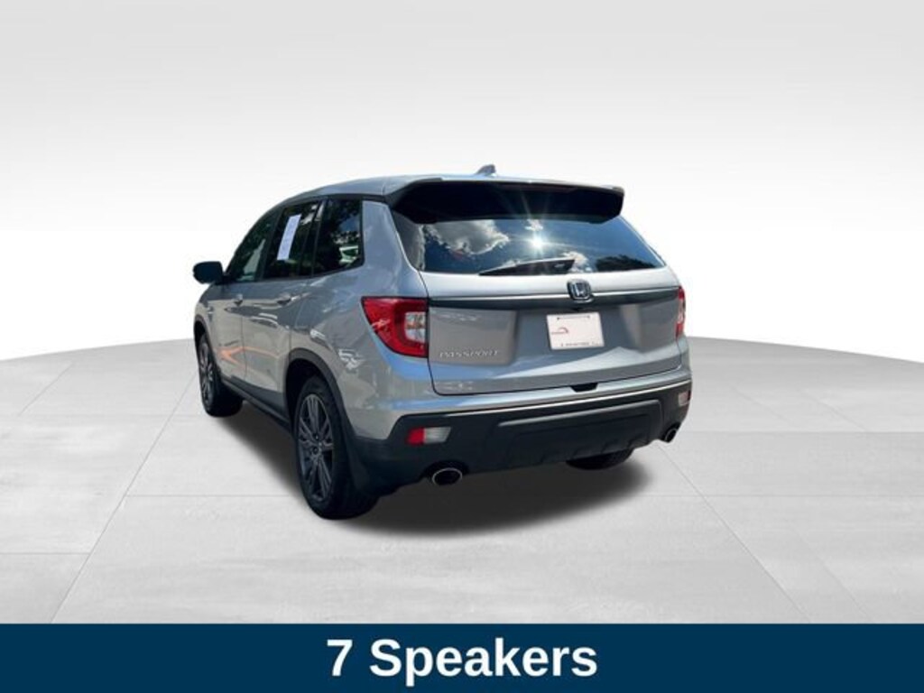Lunar Silver Metallic 2021 Honda Passport EX-L 3.5L V6 24V SOHC i-VTEC 9-Speed Automatic FWD 4-Wheel Disc Brakes, 4.334 Axle Ratio, 7 Speakers, A/V remote: CabinControl, Air Conditioning, AM/FM radio: SiriusXM, Apple CarPlay/Android Auto, Auto-dimming Rear-View mirror, Blind Spot Information (BSI) System warning, Delay-off headlights, Driver door bin, Driver vanity mirror, Driver's Seat Mounted Armrest, Dual front side impact airbags, Electronic Stability Control, Exterior Parking Camera Rear, Forward collision: Collision Mitigation Braking System (CMBS) + FCW mitigation, Four wheel independent suspension, Front Bucket Seats, Front Center Armrest, Front dual zone A/C, Front reading lights, Fully automatic headlights, Garage door transmitter: HomeLink, Heated door mirrors, Heated Front Bucket Seats, Heated front seats, Illuminated entry, Lane departure: Lane Keeping Assist System (LKAS) active, Leather-Trimmed Seats, Memory seat, Occupant sensing airbag, Outside temperature display, Panic alarm, Passenger door bin, Passenger seat mounted armrest, Passenger vanity mirror, Power door mirrors, Power Liftgate, Power passenger seat, Power steering, Power Sunroof, Rear seat center armrest, Rear window wiper, Remote keyless entry, Security system, Speed control, Split folding rear seat, Spoiler, Steering wheel mounted audio controls, Tachometer, Tilt steering wheel, Traction control, Turn signal indicator mirrors, Variably intermittent wipers, Wheels: 20 Split-Spoke Pewter Gray Alloy.