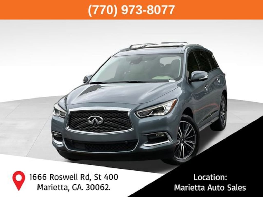 Hagane Blue 2018 INFINITI QX60 3.5L V6 CVT FWD 2-Way Driver's Seat Power Lumbar Support, 2nd & 3rd Row Moonroof w/Power Rear Sunshade, 3rd row seats: bench, 5.25 Axle Ratio, 6 Speakers, ABS brakes, Active Trace Control, Advanced Climate Control System, Air Conditioning, AM/FM radio: SiriusXM, Around View Monitor w/Moving Object Detection, Auto Side Dimming Mirrors, Back-Up Collision Intervention (BCI), Blind Spot Intervention System (BSI), Blind Spot Warning System (BSW), Bose Cabin Surround Sound System, Bumpers: body-color, Cargo Package w/Deluxe Tech Package, Cargo Protector, Climate-Controlled Front Seats, Cross Bars, Delay-off headlights, Deluxe Technology Package, Distance Control Assist, Dual Occupant Memory System, ECO Pedal, Enhanced Intelligent Key Memory, Entry & Exit Assist, First Aid Kit, Forward Emergency Braking, Front & Rear Sonar Sensors, Front Bucket Seats, Front Center Armrest w/Storage, Front dual zone A/C, Front Pre-Crash Seatbelts, Fully automatic headlights, Garage door transmitter, Heated 2nd-Row Seats, Heated Front Seats, Heated front seats, Heated Steering Wheel, High Beam Assist, High intensity discharge headlights: Bi-Xenon, Illuminated entry, Illuminated Kick Plates (IKP), INFINITI Navigation, Intelligent Cruise Control, Lane Departure Prevention (LDP), Lane Departure Warning System, Leather Shift Knob, Leather-Appointed Seats, Maple Interior Accents, Motion Activated Liftgate, Outside Mirrors w/Reverse Tilt-Down Feature, Panic alarm, Passenger door bin, Power door mirrors, Power Liftgate, Power passenger seat, Power Return 3rd Row Seat Back, Power steering, Power Sunroof, Predictive Forward Collision Warning (PFCW), Premium Package, Premium Plus Package, Radio: AM/FM/CD/DVD w/MP3 Playback Capability, Rain-Sensing Front Windshield Wipers, Rear air conditioning, Rear anti-roll bar, Rear Bumper Protector, Rear Cargo Cover, Reclining 3rd row seat, Remote Engine Start, Remote keyless entry, Roof Rails, Security system, Speed control, Splash Guards (Color-Matched Set of 4), Split folding rear seat, Traction control, Variably intermittent wipers, Voice Recognition For Navigation, Wheels: 20 15-Spoke Aluminum-Alloy.