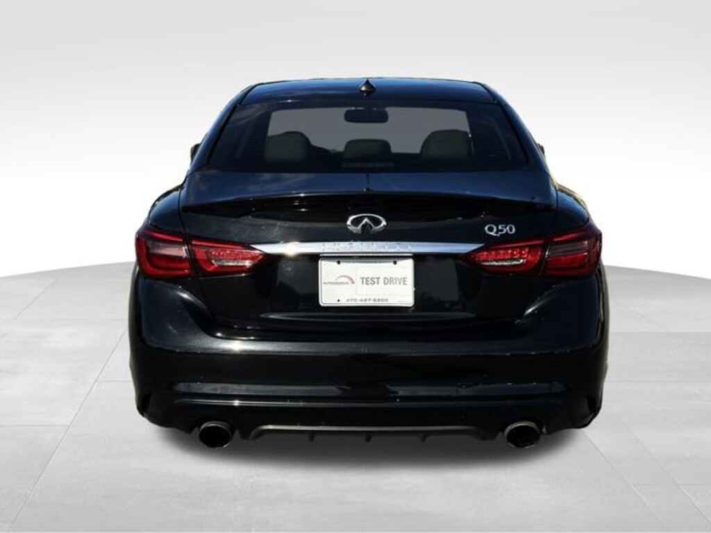 Midnight Black 2019 INFINITI Q50 3.0t LUXE 3.0L V6 7-Speed Automatic with Overdrive RWD 18 x 7.5 Aluminum Alloy Wheels, 6 Speakers, AM/FM radio: SiriusXM, Cargo Net, Cargo Package (L96), Carpeted Trunk Mat, Compass, Driver door bin, Driver vanity mirror, Electronic Stability Control, First Aid Kit, Front Bucket Seats, Front Center Armrest, Front dual zone A/C, Fully automatic headlights, Garage door transmitter: HomeLink, Illuminated entry, INFINITI Radiant Interior Ambient Lighting, Leather Shift Knob, Passenger door bin, Power steering, Power windows, Radio data system, Remote keyless entry, Security system, Shopping Bag Hook, Speed control, Splash Guards, Traction control, Trip computer, Turn signal indicator mirrors.