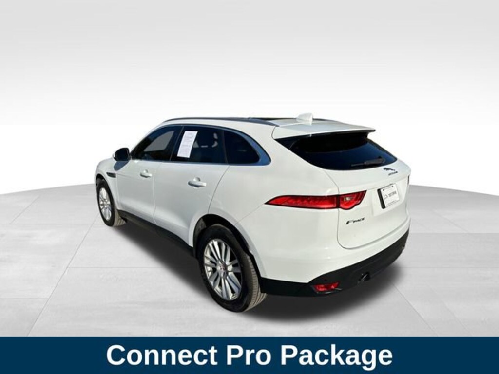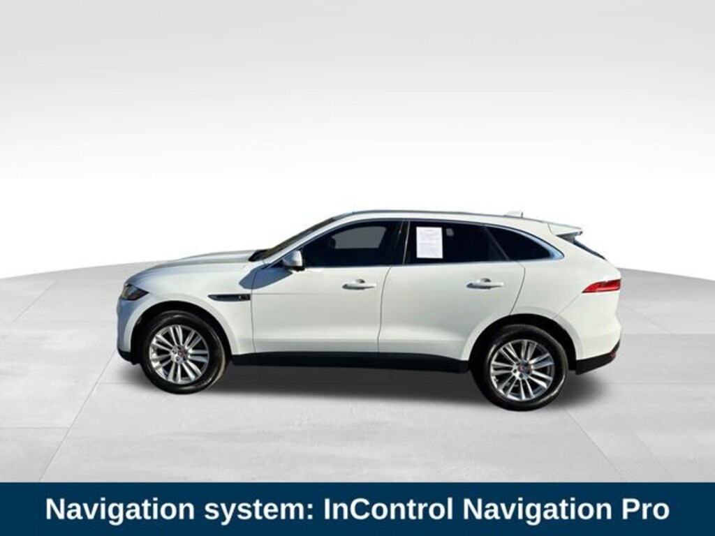 Fuji White 2019 Jaguar F-PACE 25t Prestige 2.0L I4 Turbocharged 8-Speed Automatic AWD 11 Speakers, 3.73 Axle Ratio, AM/FM radio, Auto tilt-away steering wheel, Auto-dimming door mirrors, Auto-dimming Rear-View mirror, Automatic temperature control, Brake assist, Connect Pro Package, Delay-off headlights, Electronic Stability Control, Exterior Parking Camera Rear, Front Bucket Seats, Front Center Armrest, Front dual zone A/C, Front reading lights, Garage door transmitter: HomeLink, Grained Leather Seat Trim, Heated door mirrors, Heated Front Bucket Seats, Heated front seats, Heated steering wheel, High-Intensity Discharge Headlights, InControl Apps, Memory seat, Navigation Pro, Navigation system: InControl Navigation Pro, Outside temperature display, Panic alarm, Passenger door bin, Passenger vanity mirror, Power door mirrors, Power Liftgate, Power passenger seat, Power steering, Power Sunroof, Pro Services & Wi-Fi Hotspot, Rear anti-roll bar, Rear seat center armrest, Rear window wiper, Remote keyless entry, Security system, Speed control, Split folding rear seat, Steering wheel memory, Tachometer, Telescoping steering wheel, Traction control, Wheels: 19 7 Split-Spoke (Style 7012).