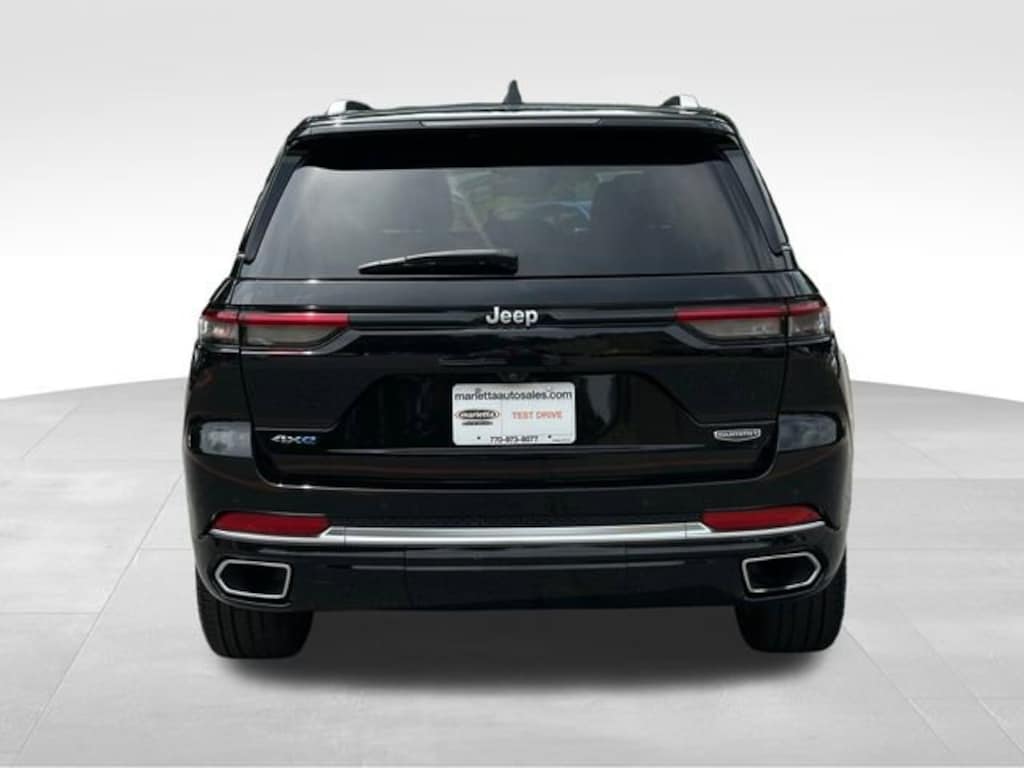 Diamond Black Crystal Pearlcoat 2023 Jeep Grand Cherokee Summit 4xe 2.0L I4 DOHC 8-Speed Automatic 4WD 2.0L I4 DOHC, 4WD, 19 Speakers, 3.70 Rear Axle Ratio, ABS brakes, Active Cruise Control, AM/FM radio: SiriusXM with 360L, Auto-dimming door mirrors, Auto-leveling suspension, Brake assist, Compass, Delay-off headlights, Electronic Stability Control, Front Bucket Seats, Front Center Armrest w/Storage, Front dual zone A/C, Front reading lights, Garage door transmitter, Genuine wood dashboard insert, Heated door mirrors, Heated front seats, Heated rear seats, Illuminated entry, Low tire pressure warning, Nappa Leather Seats, Navigation System, Overhead airbag, Panic alarm, Passenger door bin, Power door mirrors, Power driver seat, Power Liftgate, Power passenger seat, Power steering, Power Sunroof, Rear dual zone A/C, Remote keyless entry, Security system, Speed control, Split folding rear seat, Spoiler, Steering wheel memory, Steering wheel mounted audio controls, Tilt steering wheel, Traction control, Turn signal indicator mirrors, Two Tone Paint Group, Ventilated front seats, Wheels: 20 x 8.5 Fully Painted Aluminum Silver.
