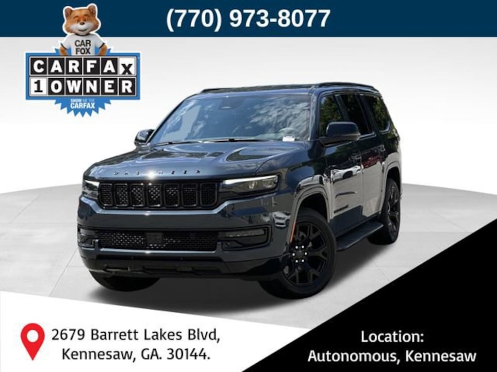 River Rock 2025 Jeep Wagoneer Series II Carbide 3.0L I6 8-Speed Automatic RWD 10 Speakers, 3.55 Rear Axle Ratio, 3rd row seats: bench, 4-Wheel Disc Brakes, AM/FM radio: SiriusXM with 360L, Amazon Fire TV Built-In, Apple CarPlay/Android Auto, Audio memory, Automatic temperature control, Black Exterior Accents, Brake assist, Carbide Appearance Package, Compass, Delay-off headlights, Driver's Seat Mounted Armrest, Electronic Stability Control, Emergency communication system: Jeep Connect, Exterior Mirrors w/Memory, Front Bucket Seats, Front Center Armrest w/Storage, Front dual zone A/C, Front fog lights, Front reading lights, Fully automatic headlights, Garage door transmitter, Genuine wood console insert, Genuine wood door panel insert, Heated front seats, Heated rear seats, Heated steering wheel, Illuminated entry, Leather Trimmed Bucket Seats, Low tire pressure warning, Memory seat, Navigation System, Normal Duty Suspension, Outside temperature display, Overhead console, Panic alarm, ParkView Rear Back-Up Camera, Passenger door bin, Passenger vanity mirror, Power adjustable front head restraints, Power driver seat, Power Liftgate, Power passenger seat, Power windows, Quick Order Package 25F Carbide, Radio data system, Rain sensing wipers, Rear air conditioning, Rear dual zone A/C, Rear Seat Video Group 1, Reclining 3rd row seat, Seatback Video Screens, Security system, Speed control, Split folding rear seat, Steering wheel mounted audio controls, Tachometer, Telescoping steering wheel, Traction control, Variably intermittent wipers, Ventilated front seats, Video USB Port, Wheels: 20 x 9 Gloss Black Painted Aluminum.