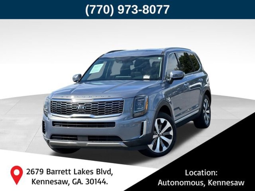 Everlasting Silver 2020 Kia Telluride S 3.8L V6 DGI DOHC Dual CVVT 8-Speed Automatic FWD 3.648 Axle Ratio, 3rd row seats: split-bench, 6 Speakers, 8-Passenger Seating, AM/FM radio: SiriusXM, Apple CarPlay & Android Auto, Carpeted Floor Mats, Driver door bin, Driver vanity mirror, Electronic Stability Control, Front Bucket Seats, Front Center Armrest, Front reading lights, Fully automatic headlights, Heated Front Bucket Seats, Heated front seats, Illuminated entry, Passenger door bin, Power Sunroof, Power windows, Radio data system, Rear air conditioning, Remote keyless entry, Roof rack: rails only, S 8 Passenger Seating Package, Security system, Speed control, Spoiler, Traction control, Turn signal indicator mirrors, Wheels: 7.5 x 20 Machined Finish Alloy.