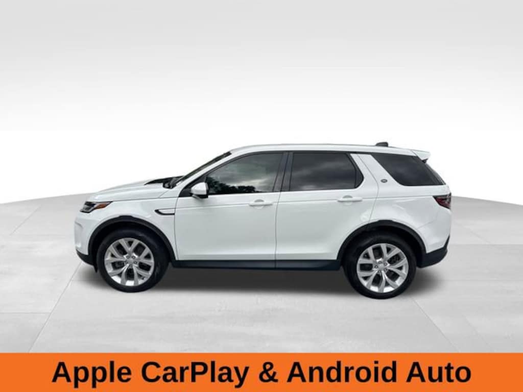 Fuji White 2021 Land Rover Discovery Sport SE 2.0L I4 Turbocharged 9-Speed Automatic 4WD Apple CarPlay & Android Auto, 12-Way Electric Front Seats, 4.54 Axle Ratio, 6 Speakers, AM/FM radio: SiriusXM, Apple CarPlay & Android Auto, Automatic temperature control, Driver door bin, Electronic Stability Control, Front Bucket Seats, Front Center Armrest, Front dual zone A/C, Garage door transmitter: HomeLink, Grained Leather Seat Trim, Illuminated entry, Memory seat, Navigation System, Passenger door bin, Power Liftgate, Power passenger seat, Power windows, Radio data system, Rear fog lights, Remote keyless entry, Security system, Speed control, Split folding rear seat, Spoiler, Traction control, Wheels: 20 Style 5076 Gloss Sparkle Silver.