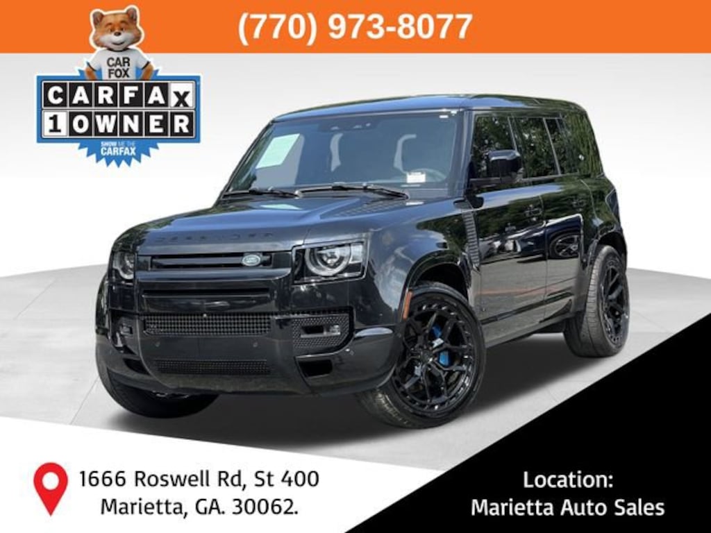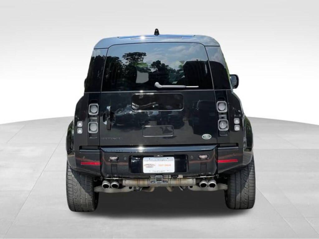 Santorini Black Metallic 2022 Land Rover Defender 110 V8 5.0L V8 8-Speed Automatic 4WD 15 Speakers, 18-Way Climate Front Row Seats, 3.55 Axle Ratio, ABS brakes, Active Cruise Control, AM/FM radio: SiriusXM, Apple CarPlay & Android Auto, Compass, Driver door bin, Electronic Stability Control, Extended Black Exterior Pack, Front Bucket Seats, Front Center Armrest, Front dual zone A/C, Garage door transmitter: HomeLink, Gloss Black Front Grille, Heated door mirrors, Heated front seats, Heated rear seats, Illuminated entry, Low tire pressure warning, Navigation System, Passenger door bin, Power door mirrors, Power Sunroof, Radio data system, Rear air conditioning, Remote keyless entry, Security system, Speed control, Traction control, Wheels: 22 Gloss Dark Grey Style 5098, Windsor Leather Seat Trim.