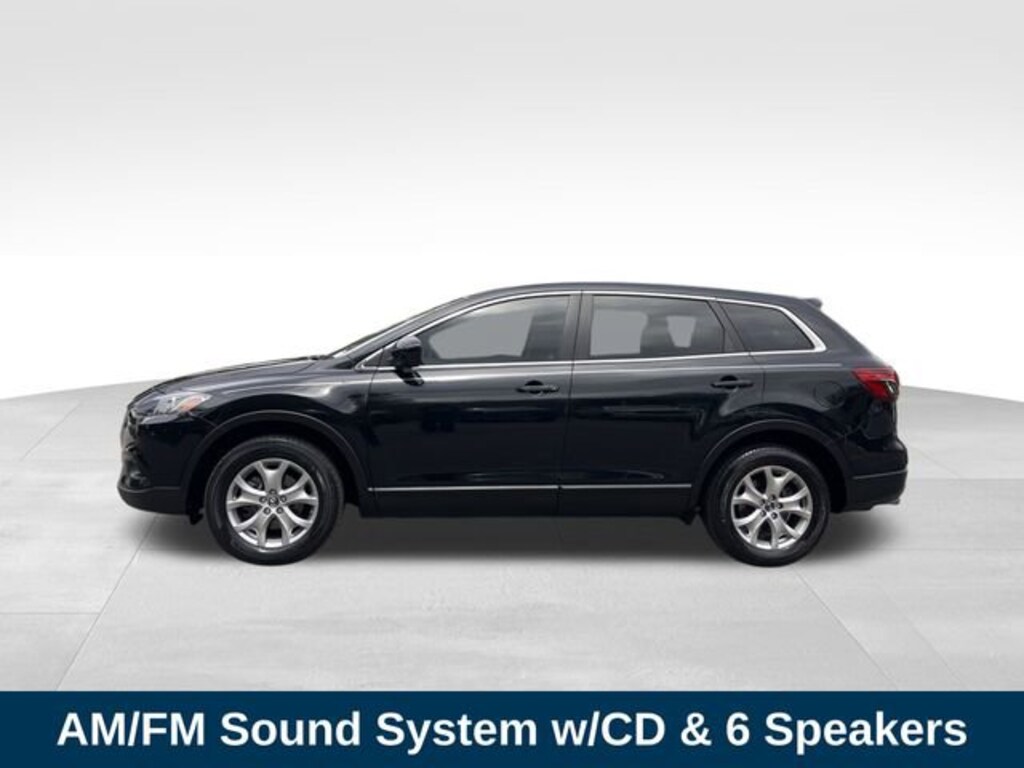 Jet Black Mica 2015 Mazda CX-9 Sport 3.7L V6 DOHC 24V 6-Speed Sport Automatic FWD 18 x 7.5J Aluminum Alloy Wheels, 3.464 Axle Ratio, 3rd row seats: split-bench, 4-Wheel Disc Brakes, 8-Way Power Adjustable Driver Seat, ABS brakes, AM/FM radio, AM/FM Sound System w/CD & 6 Speakers, Anti-whiplash front head restraints, Automatic temperature control, Bumpers: body-color, Cloth Seat Trim, Driver door bin, Driver vanity mirror, Electronic Stability Control, Front Bucket Seats, Front Center Armrest, Front dual zone A/C, Front reading lights, Heated Front Seats, Illuminated entry, Leather Shift Knob, Passenger door bin, Power steering, Rear air conditioning, Rear anti-roll bar, Remote keyless entry, Speed control, Speed-sensing steering, Spoiler, Telescoping steering wheel, Tilt steering wheel, Traction control, Trip computer.