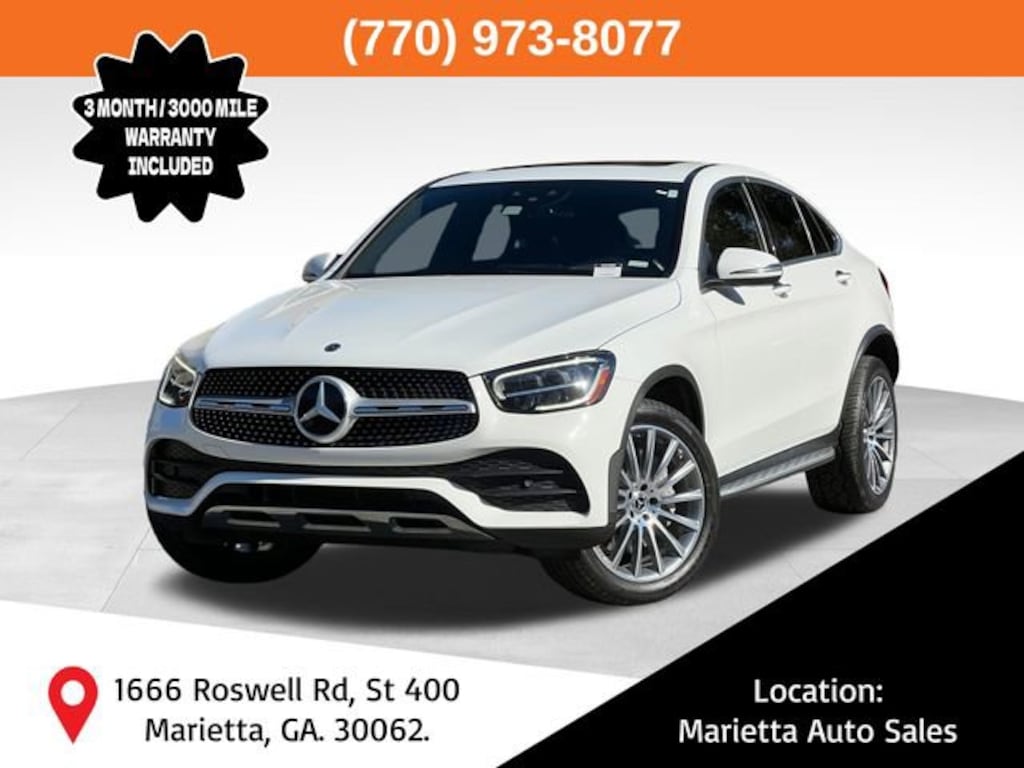 Recent Arrival! Polar White 2020 Mercedes-Benz GLC GLC 300 Coupe 4MATIC® I4 9-Speed Automatic 4MATIC® 3.27 Axle Ratio, 4-Way Lumbar Support, 4-Wheel Disc Brakes, 6 Speakers, ABS brakes, AM/FM radio: SiriusXM, AMG® Bodystyling, AMG® Floor Mats, AMG® Line, AMG® Line Exterior, Apple CarPlay®/Android Auto®, Automatic temperature control, Burmester® Surround Sound System, Driver door bin, Driver vanity mirror, Electronic Stability Control, Emergency communication system: eCall Emergency System, Exterior Parking Camera Rear, Flat-Bottom Multifunction Sport Steering Wheel, Front Bucket Seats, Front Center Armrest, Front dual zone A/C, Garage door transmitter: Homelink, Head-Up Display, Illuminated entry, MB-Tex Upholstery, Memory seat, Occupant sensing airbag, Passenger door bin, Power door mirrors, Power driver seat, Power Liftgate, Radio data system, Rear anti-roll bar, Remote keyless entry, Security system, Speed control, Speed-sensing steering, Sunroof, Telescoping steering wheel, Traction control, Turn signal indicator mirrors, Wheels: 20 AMG® Multispoke.