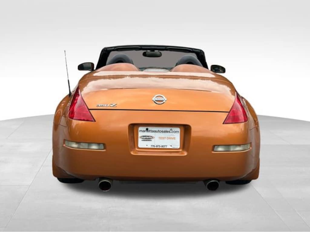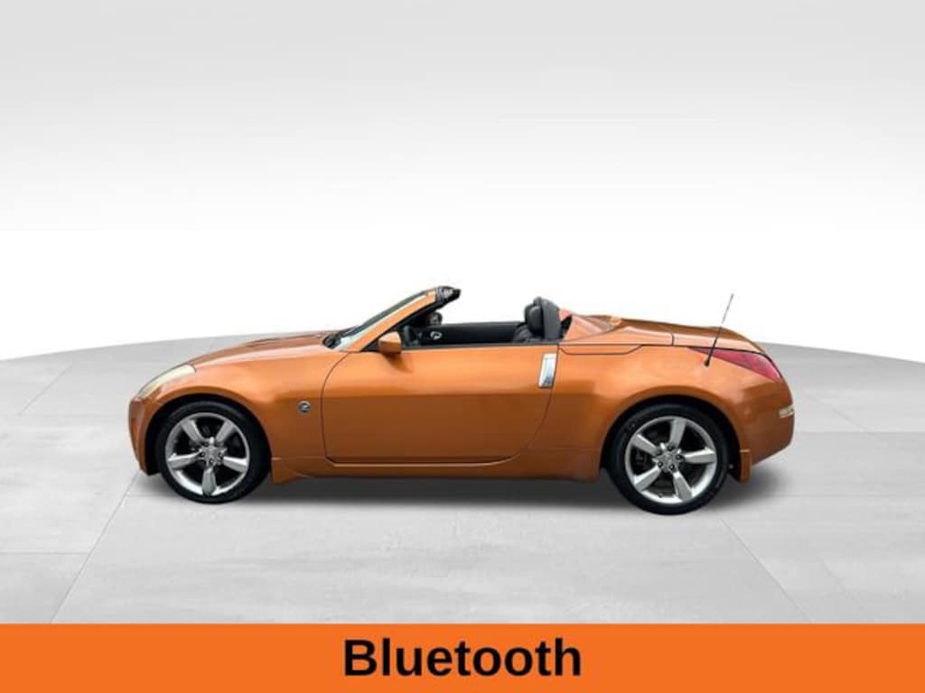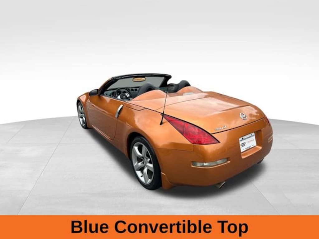 Le Mans Sunset Clearcoat Metallic 2005 Nissan 350Z Touring 3.5L V6 DOHC 24V 5-Speed Automatic Electronic with Overdrive RWD Bluetooth, 17 7-Spoke Aluminum Alloy Wheels, 7 Speakers, ABS brakes, AM/FM radio, Anti-whiplash front head restraints, Auto-dimming Rear-View mirror, Automatic temperature control, Blue Convertible Top, Brake assist, Bumpers: body-color, Dual front side impact airbags, Four wheel independent suspension, Front Bucket Seats, Garage door transmitter: HomeLink, Glass rear window, Heated door mirrors, Heated front seats, Heated Front Sport Bucket Seats, High intensity discharge headlights: Xenon, Illuminated entry, Leather Seat Trim, Low tire pressure warning, Panic alarm, Passenger door bin, Passenger vanity mirror, Power convertible roof, Power door mirrors, Power driver seat, Power passenger seat, Remote keyless entry, Security system, Speed control, Tachometer, Traction control, Variably intermittent wipers.