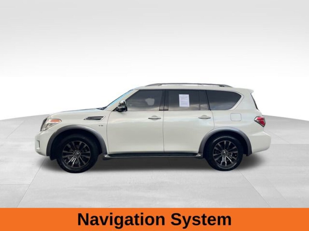 Recent Arrival! Pearl White 2017 Nissan Armada Platinum 5.6L V8 DOHC 32V Endurance 7-Speed Automatic 4WD 4WD, 13 Speakers, 2.937 Axle Ratio, 3rd row seats: split-bench, 4-Wheel Disc Brakes, AM/FM radio: SiriusXM, Auto tilt-away steering wheel, Automatic temperature control, Captain Seat Package, Driver door bin, Electronic Stability Control, Front Bucket Seats, Front Center Armrest, Front dual zone A/C, Fully automatic headlights, Garage door transmitter: HomeLink, Heated & Cooled Front Bucket Seats, Heated front seats, Illuminated entry, Lane Departure Warning System, Leather-Appointed Seat Trim, Memory seat, Navigation System, Passenger door bin, Power door mirrors, Power Liftgate, Power Sunroof, Power windows, Radio data system, Rear air conditioning, Remote keyless entry, Roof rack: rails only, Second Row Captain's Chairs, Second Row Center Console w/ Padded Armrest, Security system, Speed control, Traction control, Ventilated front seats, Voltmeter, Wheels: 20 Machine-Faced Chrome w/Tinted CC.