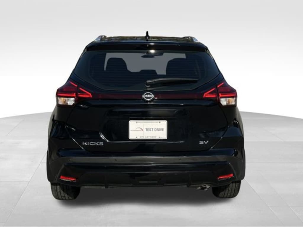 Super Black 2023 Nissan Kicks SV 1.6L 4-Cylinder DOHC 16V CVT with Xtronic FWD Rear Parking Sensors, Apple CarPlay/Android Auto, 17 Alloy Wheels, 3.93 Axle Ratio, 6 Speakers, AM/FM radio: SiriusXM, Apple CarPlay/Android Auto, Auto High-beam Headlights, Blind Spot Warning, Cloth Seat Trim, Electronic Stability Control, Front anti-roll bar, Front Bucket Seats, Front Center Armrest, Front reading lights, Heated door mirrors, Illuminated entry, Low tire pressure warning, Panic alarm, Passenger door bin, Passenger vanity mirror, Power door mirrors, Power steering, Power windows, Radio: AM/FM Audio System, Rear Parking Sensors, Rear window defroster, Rear window wiper, Remote keyless entry, Speed control, Split folding rear seat, Sport steering wheel, Tilt steering wheel, Traction control.