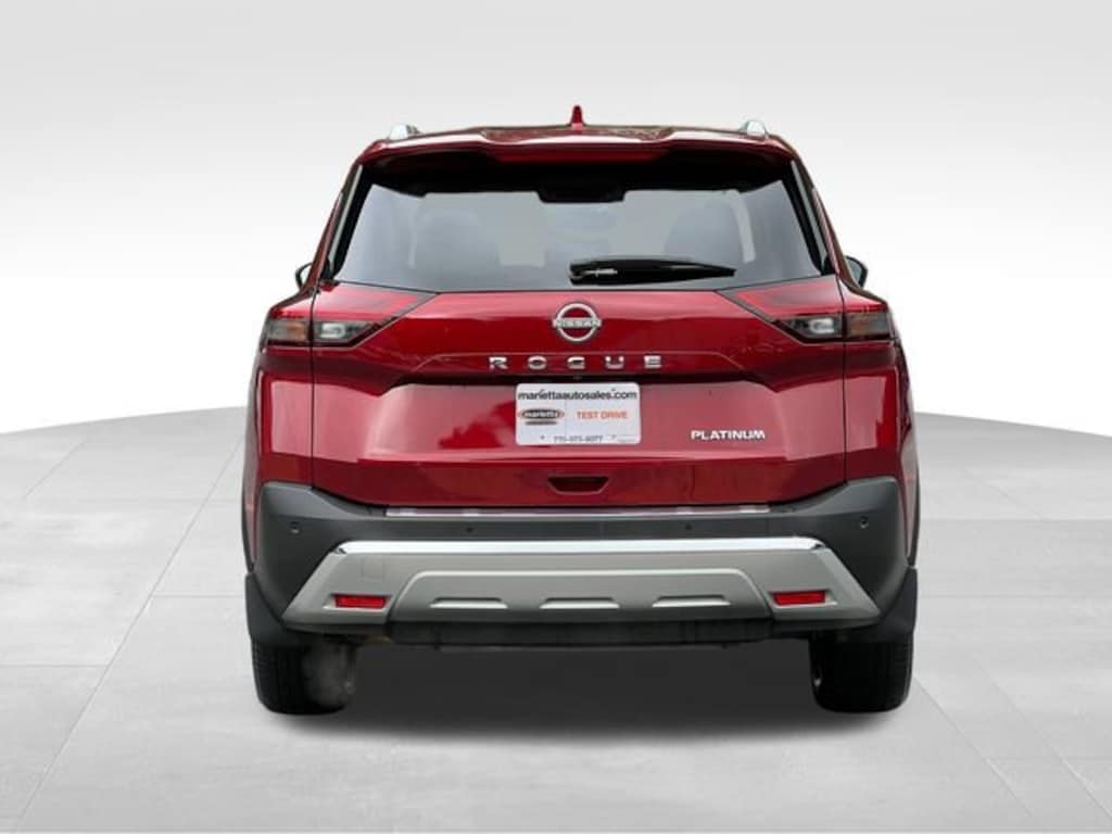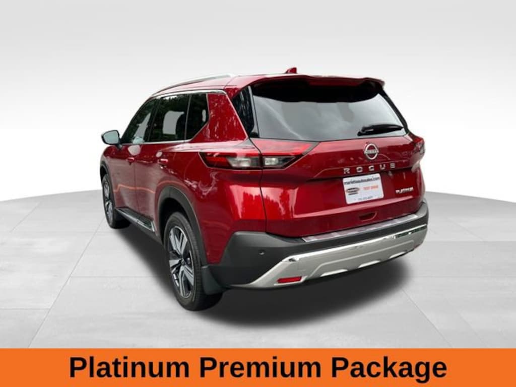 Scarlet Ember Tintcoat 2023 Nissan Rogue Platinum 1.5L I3 Turbocharged DOHC 12V LEV3-ULEV50 201hp CVT with Xtronic FWD 10 Speakers, 19 Aluminum Alloy Wheels, 5.604 Axle Ratio, AM/FM radio: SiriusXM, Bose Premium Audio System, Chrome Rear Bumper Protector, Driver door bin, Driver vanity mirror, Electronic Stability Control, First Aid Kit, Floor Mats w/2-Piece Cargo Area Protector, Front Bucket Seats, Front Center Armrest, Heads-Up Display, Heated Front Bucket Seats, Illuminated entry, Illuminated Kick Plates, Memory seat, Navigation system: NissanConnect Navigation, Passenger door bin, Platinum Premium Package, Power door mirrors, Power Liftgate, Power Sunroof, Quilted Semi-Aniline Leather Seat Trim, Radio data system, Rear Heated Seats, Rear window defroster, Remote keyless entry, Security system, Speed control, Spoiler, Traction control, Tri-Zone HVAC, Turn signal indicator mirrors.
