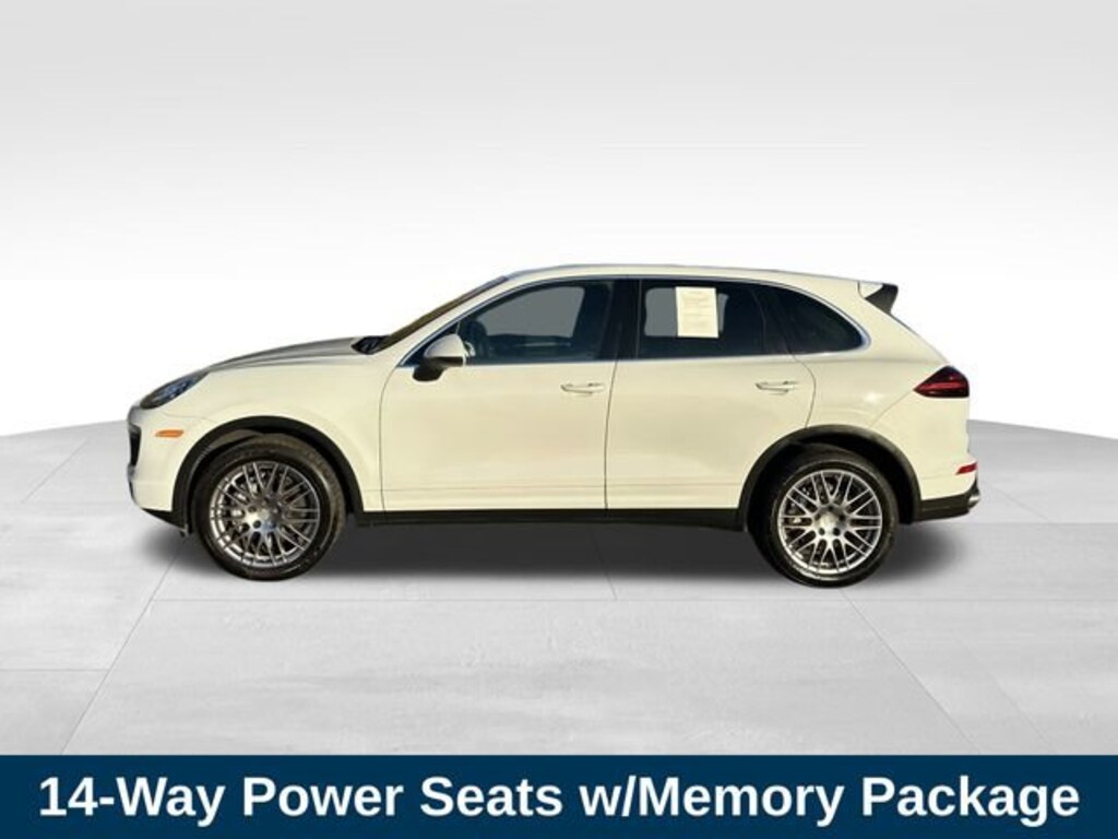 White 2015 Porsche Cayenne S 3.6L V6 8-Speed Automatic with Tiptronic AWD Saddle Brown/Black w/Two-Tone Smooth-Finish Leather Seat Trim, 10 Speakers, 14-Way Power Seats w/Memory Package, 3.09 Axle Ratio, 4-Wheel Disc Brakes, ABS brakes, AM/FM radio, Automatically Dimming Inside Rear View Mirror, Bi-Xenon Lighting System, Comfort Lighting Package (PP6), Driver door bin, Driver vanity mirror, Electronic Stability Control, Front Bucket Seats, Front Center Armrest, Front dual zone A/C, Front Heated Seats, Front Seat Ventilation, Garage door transmitter: HomeLink, Heated door mirrors, Illuminated entry, Memory seat, Outside temperature display, Panoramic Roof System, Partial Leather Seat Trim, Passenger door bin, Power door mirrors, Power Liftgate, Power windows, Premium Package, Radio: AM/FM/CD/DVD w/PCM & Navigation, Rear anti-roll bar, Rear fog lights, Rear window defroster, Remote keyless entry, Reversing Camera Including Front & Rear ParkAssist, Security system, Spoiler, Tachometer, Telescoping steering wheel, Tilt steering wheel, Traction control, Wheels: 8.5J x 19 Cayenne Design II.