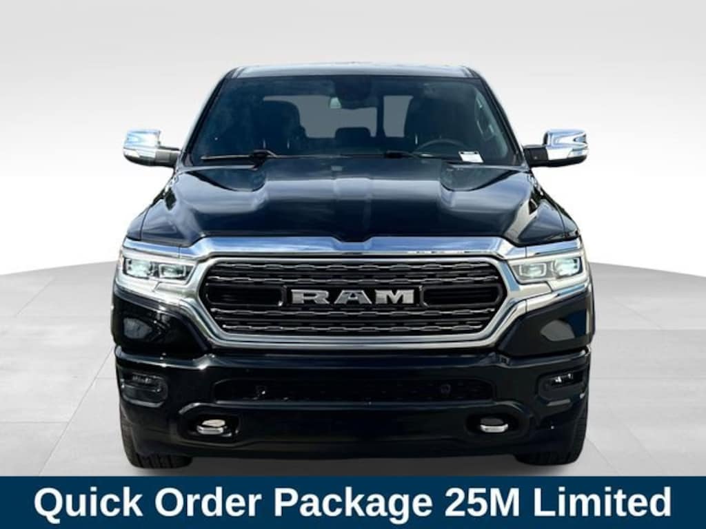 Diamond Black Crystal Pearlcoat 2019 Ram 1500 Limited HEMI 5.7L V8 Multi Displacement VVT 8-Speed Automatic RWD 1-Yr SiriusXM Guardian Trial, 10 Speakers, 12 Touchscreen Display, 3.21 Rear Axle Ratio, 48V Belt Starter Generator, Adjustable pedals, AM/FM radio: SiriusXM with 360L, Anti-Spin Differential Rear Axle, Apple CarPlay, Apple CarPlay/Android Auto, Audio memory, Body Color Bumper Group, Body Color Front Bumper, Body Color Rear Bumper w/Step Pads, Compass, Disassociated Touchscreen Display, Driver door bin, Driver vanity mirror, Electronic Stability Control, Front Bucket Seats, Front Center Armrest w/Storage, Front dual zone A/C, Front wheel independent suspension, Garage door transmitter, Heated door mirrors, Heated front seats, Illuminated entry, Integrated Center Stack Radio, Navigation System, ParkView Rear Back-Up Camera, Pedal memory, Power driver seat, Power steering, Premium Leather Trimmed Bucket Seats, Quick Order Package 25M Limited, Rear step bumper, Rear window defroster, Remote CD player, Remote keyless entry, Security system, Speed control, Split folding rear seat, Traction control, Turn signal indicator mirrors, USB Host Flip, Ventilated front seats, Wheels: 22 x 9 Polish/Painted w/Inserts.
