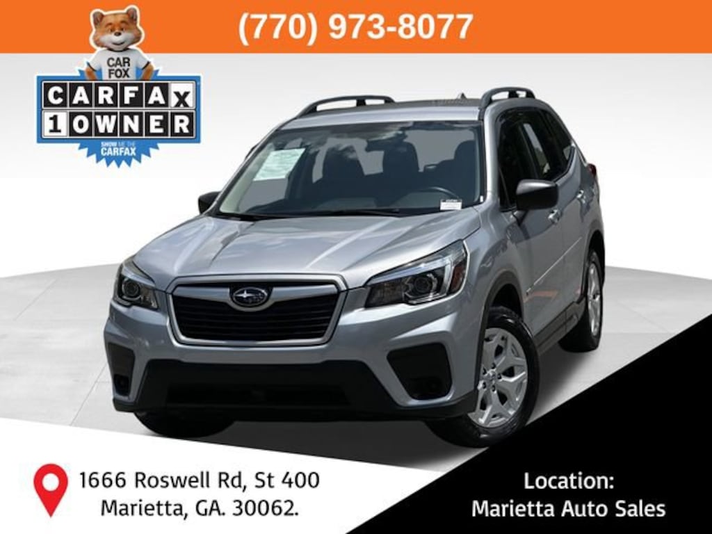 Ice Silver Metallic 2019 Subaru Forester 2.5L 4-Cylinder DOHC 16V VVT Lineartronic CVT AWD Exterior Parking Camera Rear, 3.70 Axle Ratio, 4 Speakers, Aero Crossbar Set, Alloy Wheel Package, AM/FM radio: SiriusXM, Auto-Dimming Mirror w/Compass & HomeLink, Automatic temperature control, Black Finish Roof Rails, Brake assist, Bumpers: body-color, Cargo Cover, Cargo Net, Cargo Tray, Cloth Upholstery, Dome Light LED Upgrade, Dual front impact airbags, Dual front side impact airbags, Electronic Stability Control, Exterior Parking Camera Rear, Front Bucket Seats, Front Center Armrest, Front reading lights, Fully automatic headlights, Ice Silver Metallic Body Side Molding, Illuminated entry, Occupant sensing airbag, Outside temperature display, Overhead console, Panic alarm, Passenger door bin, Passenger vanity mirror, Power door mirrors, Power steering, Radio: Subaru Starlink 6.5 Multimedia Plus System, Rear anti-roll bar, Rear window defroster, Rear window wiper, Remote keyless entry, Security system, Speed control, Split folding rear seat, STARLINK/Apple CarPlay/Android Auto, Steering wheel mounted audio controls, Sunshade, Telescoping steering wheel, Tilt steering wheel, Traction control, Variably intermittent wipers, Wheels: 17 x 7.0J Silver Finish Aluminum Alloy.