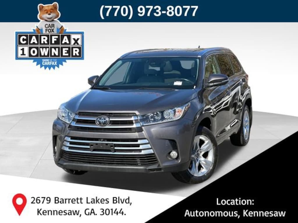 Predawn Gray Mica 2018 Toyota Highlander Limited 3.5L V6 8-Speed Automatic Electronic with ECT-i AWD Exterior Parking Camera Rear, AWD, 12 Speakers, 3.003 Axle Ratio, 3rd row seats: split-bench, AM/FM radio: SiriusXM, Auto-dimming Rear-View mirror, Driver door bin, Driver vanity mirror, Electronic Stability Control, Exterior Parking Camera Rear, Front Bucket Seats, Front dual zone A/C, Front reading lights, Garage door transmitter, Illuminated entry, Navigation System, Passenger door bin, Power Liftgate, Power steering, Power Sunroof, Power windows, Rear air conditioning, Rear Parking Sensors, Reclining 3rd row seat, Remote keyless entry, Roof rack: rails only, Security system, Speed control, Spoiler, Traction control, Trip computer, Turn signal indicator mirrors, Ventilated front seats, Wheels: 19 5-Spoke Chromtec Alloy.